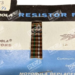 The Motorola Resistor File 6-6373 is a 150 Ohm, 1/2W carbon composition resistor with a ±10% tolerance rating. This axial termination style resistor is made in the United States and is ideal for electronic components and semiconductors. Perfect for electrical equipment and supplies, this NOS (new old stock) unit is a reliable choice for fixed resistors in various industrial applications.