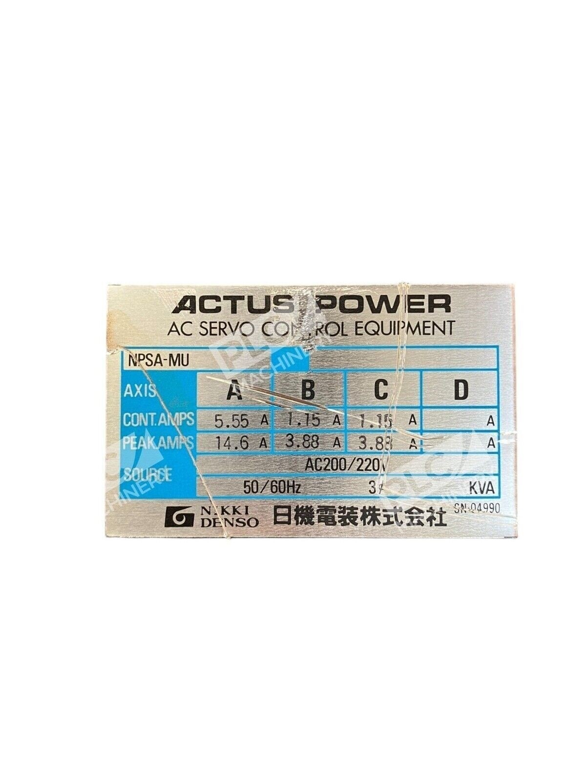 This Nikki Denso Actus Power NPSA-103MU-E1BS-A AC Servo Control Equipment is a top-of-the-line product that guarantees quality and efficiency. It is designed to provide accurate and reliable control for your equipment, ensuring that it runs smoothly and efficiently. With its brand name and model number, this product is a reliable choice for anyone looking to upgrade their current equipment. It is perfect for use in various industries, including business and industrial settings.