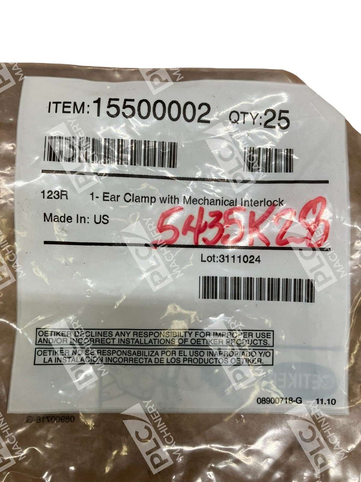 Oetikar 15500002 123 Ear Clamp With Mechanical Interlock 123R (Bag of 25)