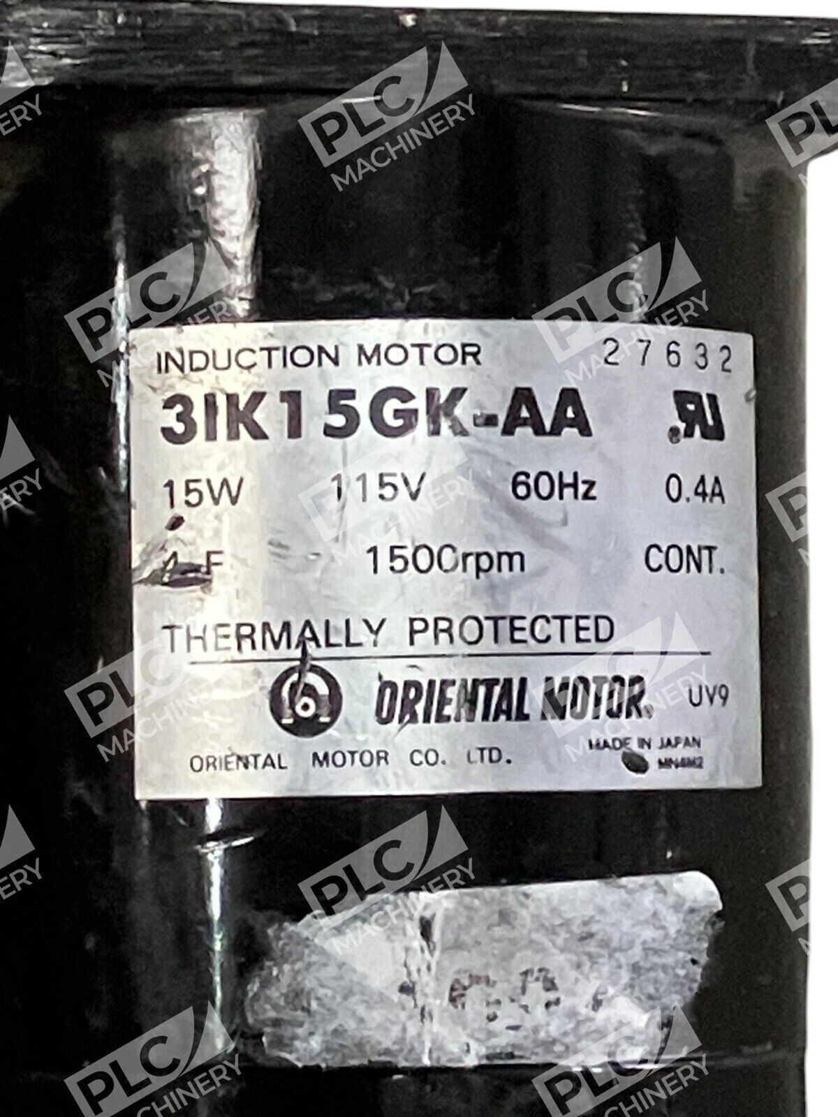 The product is an Oriental Motor 0.4V 115V 150RPM 15W 4uF Induction Motor with the model number 3IK15GK-AA. It is designed for industrial automation and motion control applications.