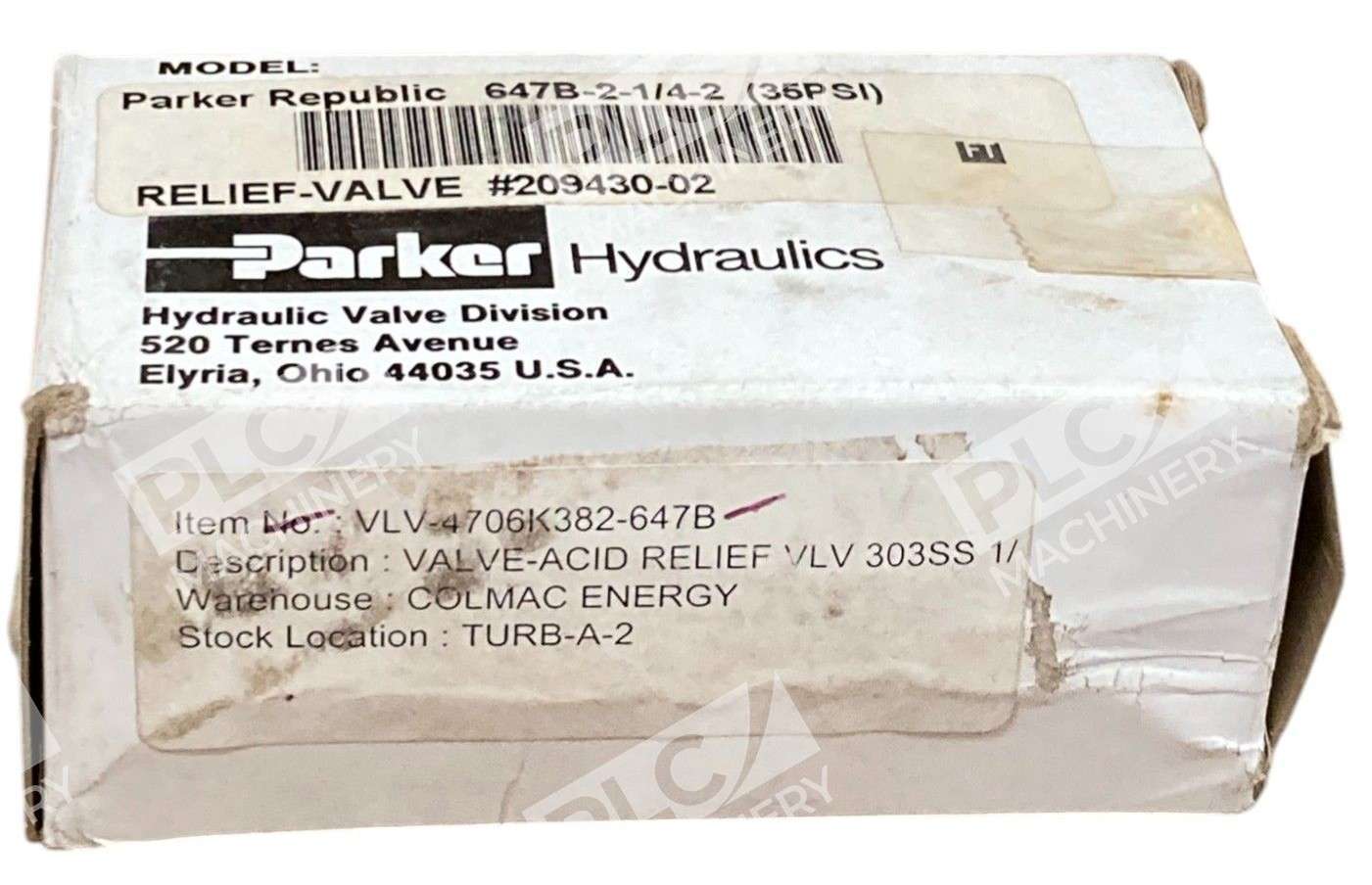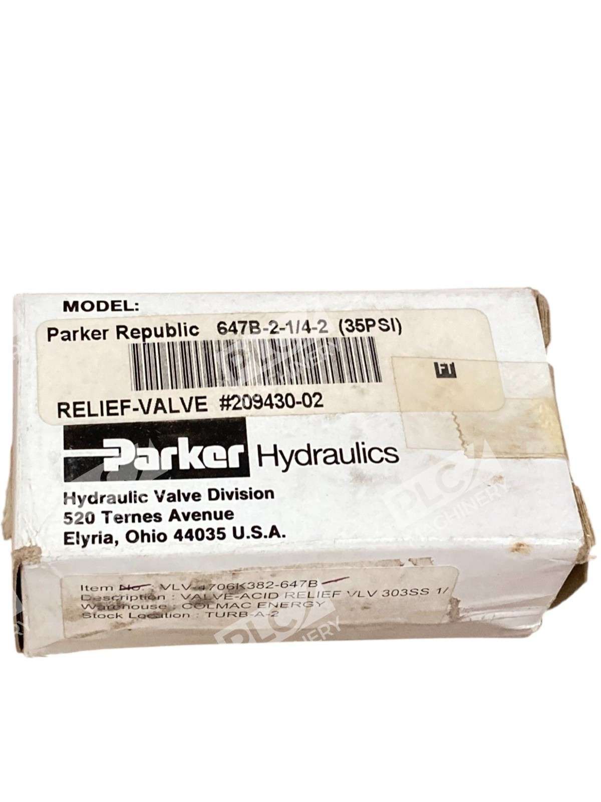 Parker 303SS 36PSI Acid Relief Valve 647B-2-1/4-2