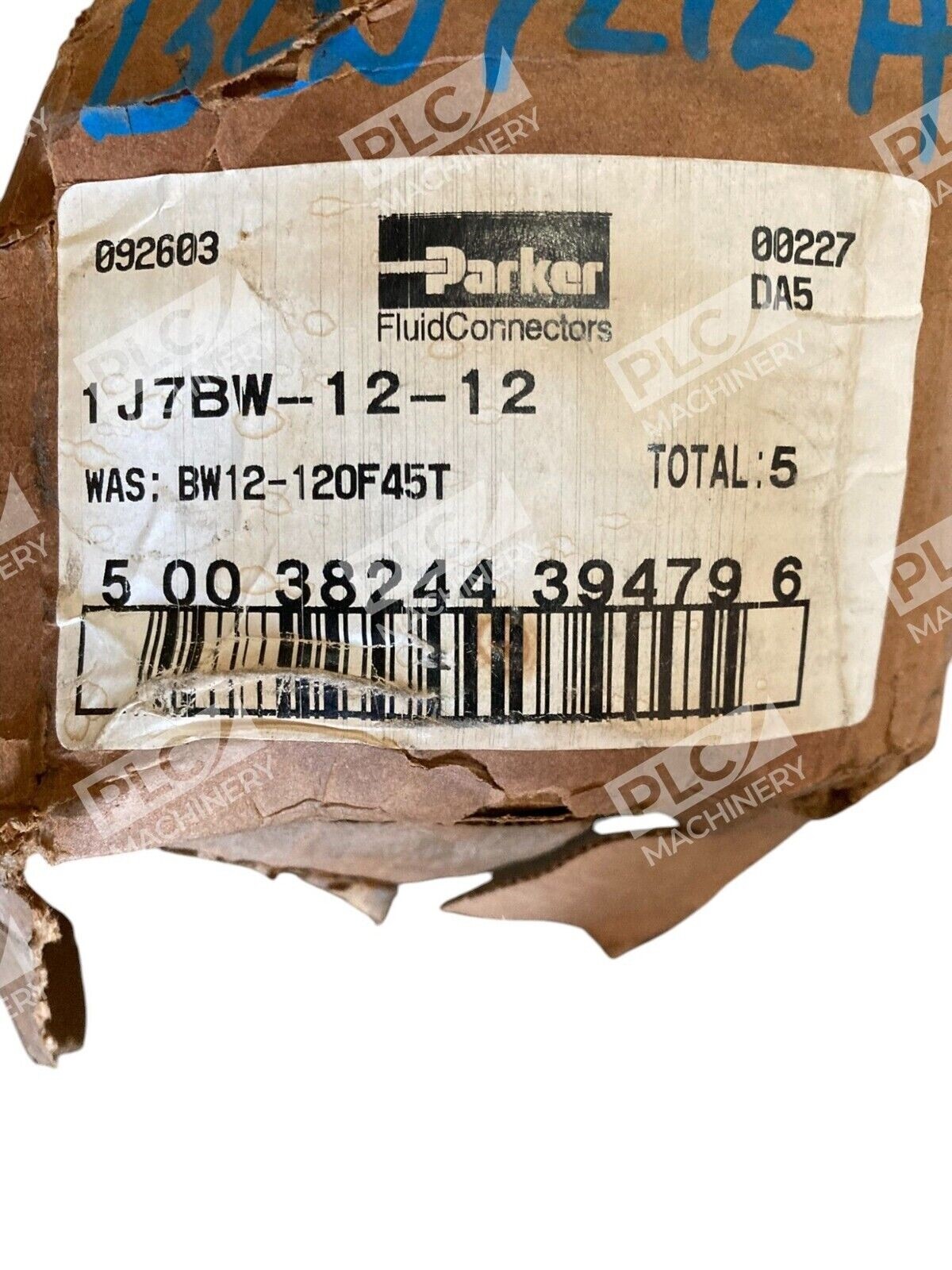 The Parker BW12-120F45T Fluid Connectors Fittings 1J7BW-12-12 are straight fittings from the Parker brand, model 6.6F3MK4S. This box of 5 fittings is designed for use in hydraulic, pneumatic, pumps, and plumbing applications.