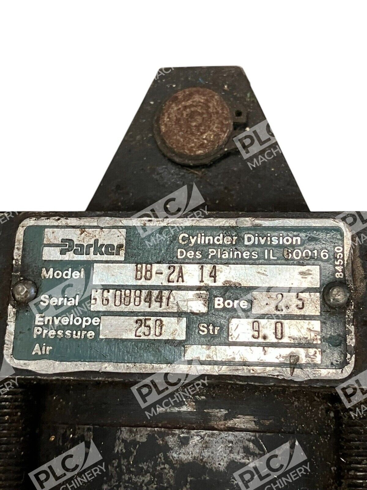This is a Parker brand pneumatic cylinder with a maximum pressure rating of 250 PSI. The specific model is 02.50 BB-2A 14 09.00, indicating its size and design. It is designed for use in hydraulic and pneumatic systems in industrial applications.