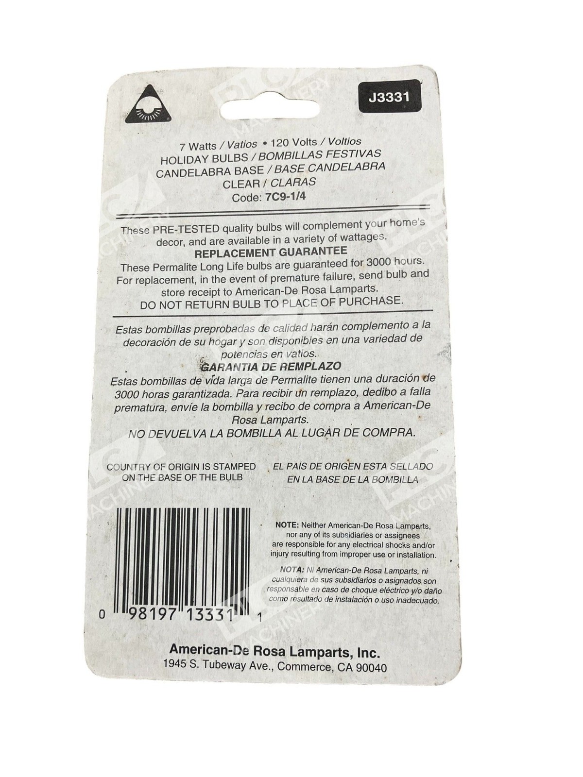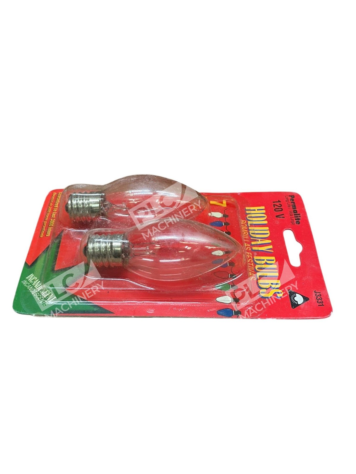 The Permalite J3331 7W 120V Incandescent Holiday Light Bulbs are a clear 2 pack of light bulbs designed for use during the holiday season. These screw connectors have a wattage of 7W and a finish of clear, providing a traditional and classic look to your holiday decorations. With a unit quantity of 1, these bulbs are sure to brighten up your home and garden during the festive season.