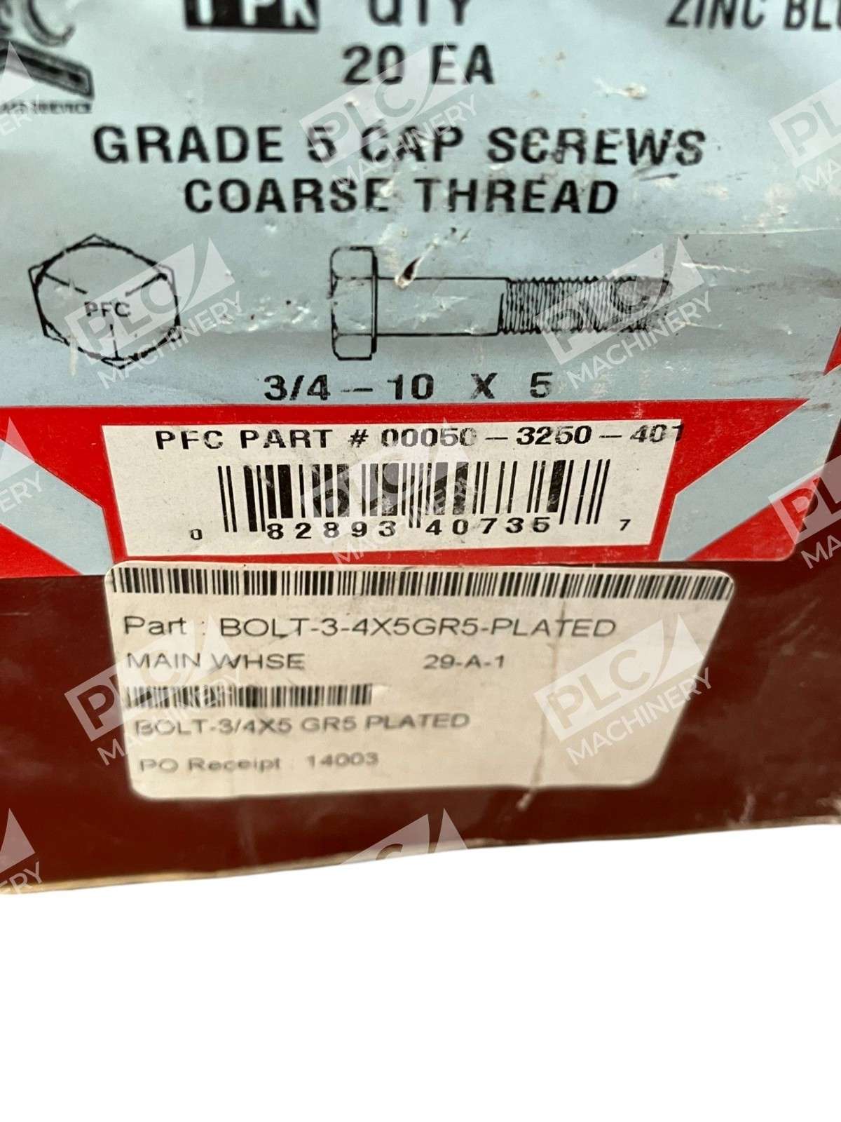 PFC 3/4-10×5 Grade 5 Cap Screws Coarse Thread Bolt 00050-3250-401 (Box of 20)