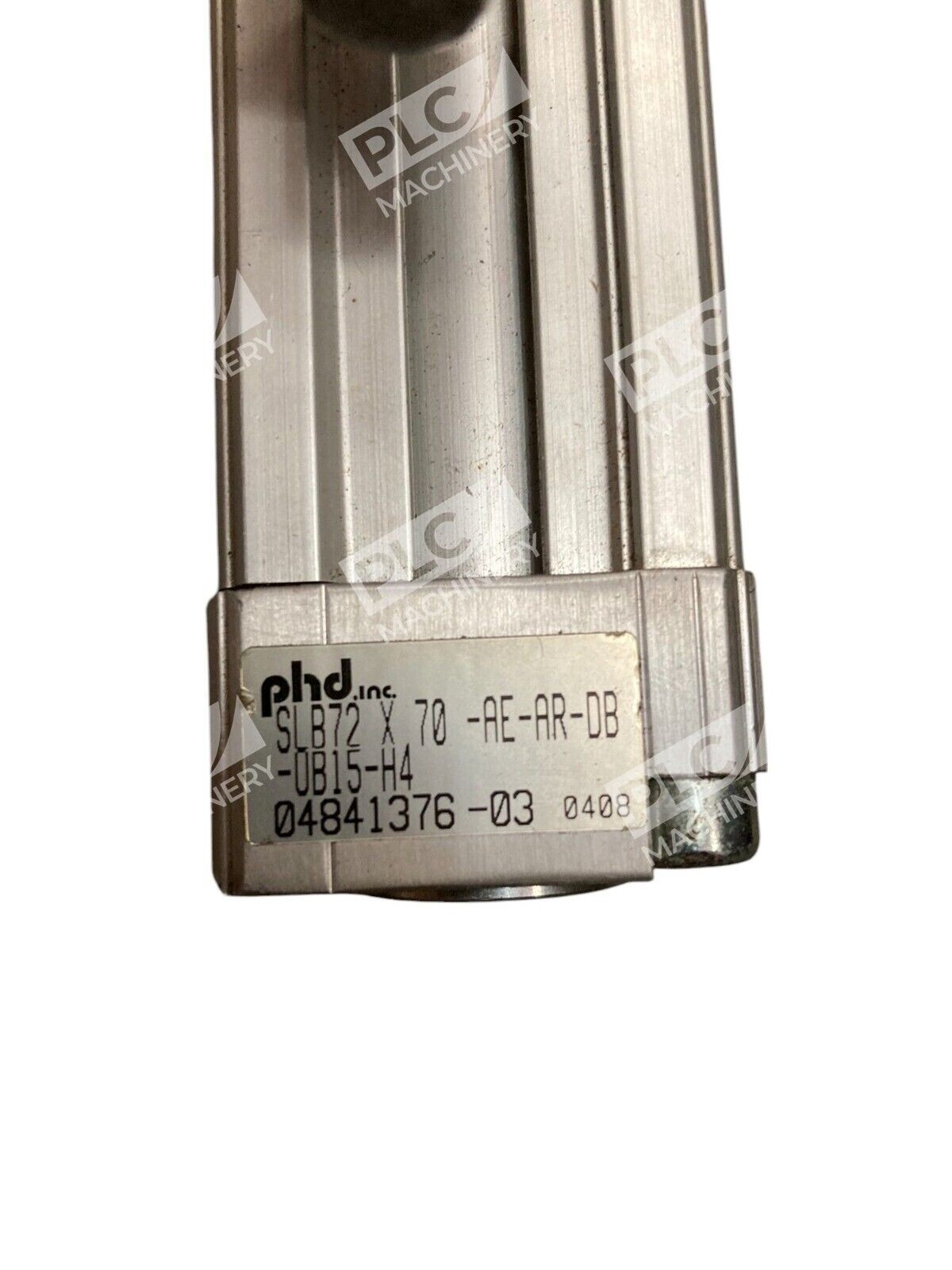 The product is a PHD 04841376-03 Pneumatic Guided Cylinder SLB72X70-AE-AR-DB-UB15-H4 manufactured by PHD INC. It is a pneumatic guided cylinder designed with specific dimensions and configuration for industrial applications in the hydraulic and pneumatic systems.