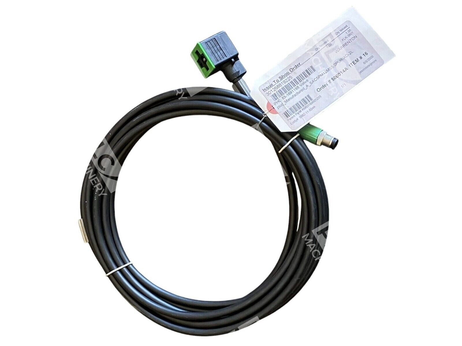 This 5-meter cable has a free cable end and a plug straight M12 connector with a coding type of A. It also has a contact surface material of Ni/Au and a material for screw connection of zinc die-cast and nickel-plated. This cable is designed for use in various industries and has a degree of pollution of 3.