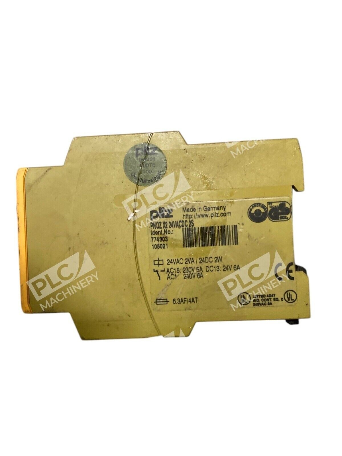 This product is a Pilz Safety Relay model 6.3AF/4AT 774303 105021 4K3, with the specific model number PNOZ-X2-24VACDC-2S. It is manufactured in Germany and is designed for safety applications in industrial settings.