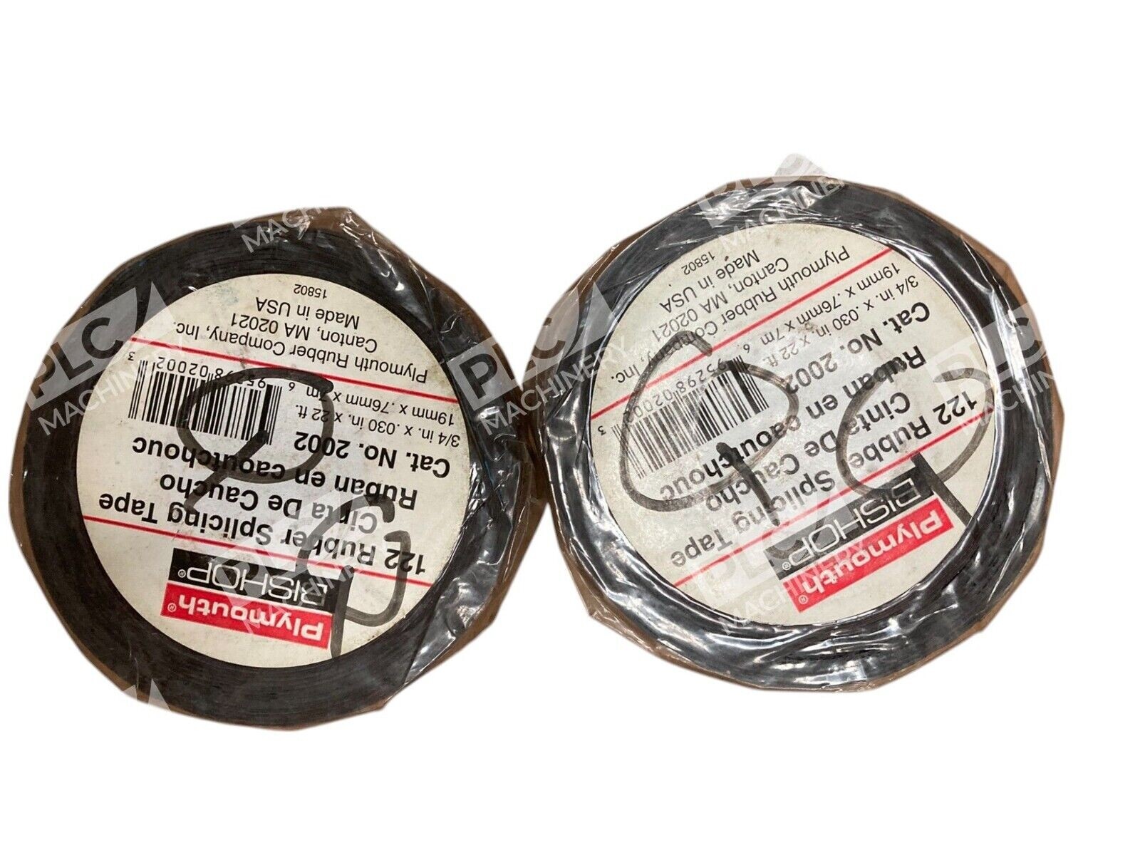The product is a set of two rolls of Plymouth Bishop 122 Rubber Splicing Tape, specifically designed for splicing applications. Each roll measures .75 inches in width, .030 inches in thickness, and 22 feet in length. The tape is suitable for industrial use and is a reliable choice for adhesive applications.