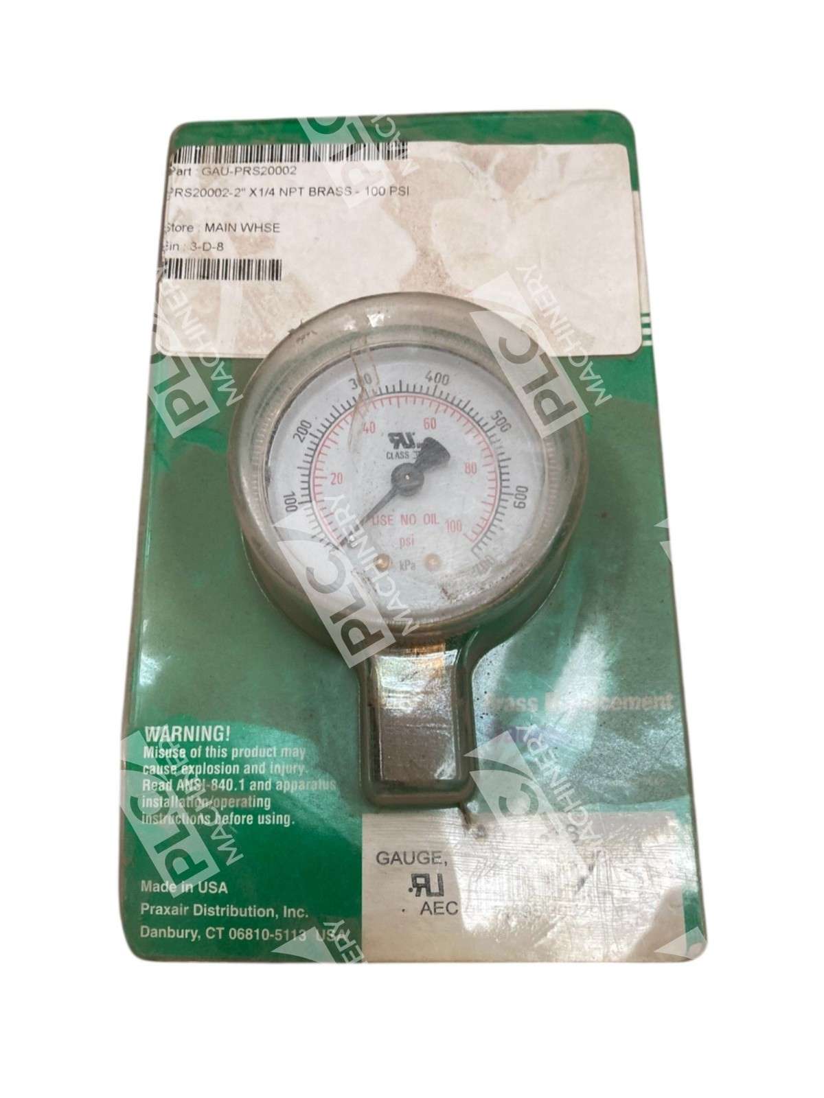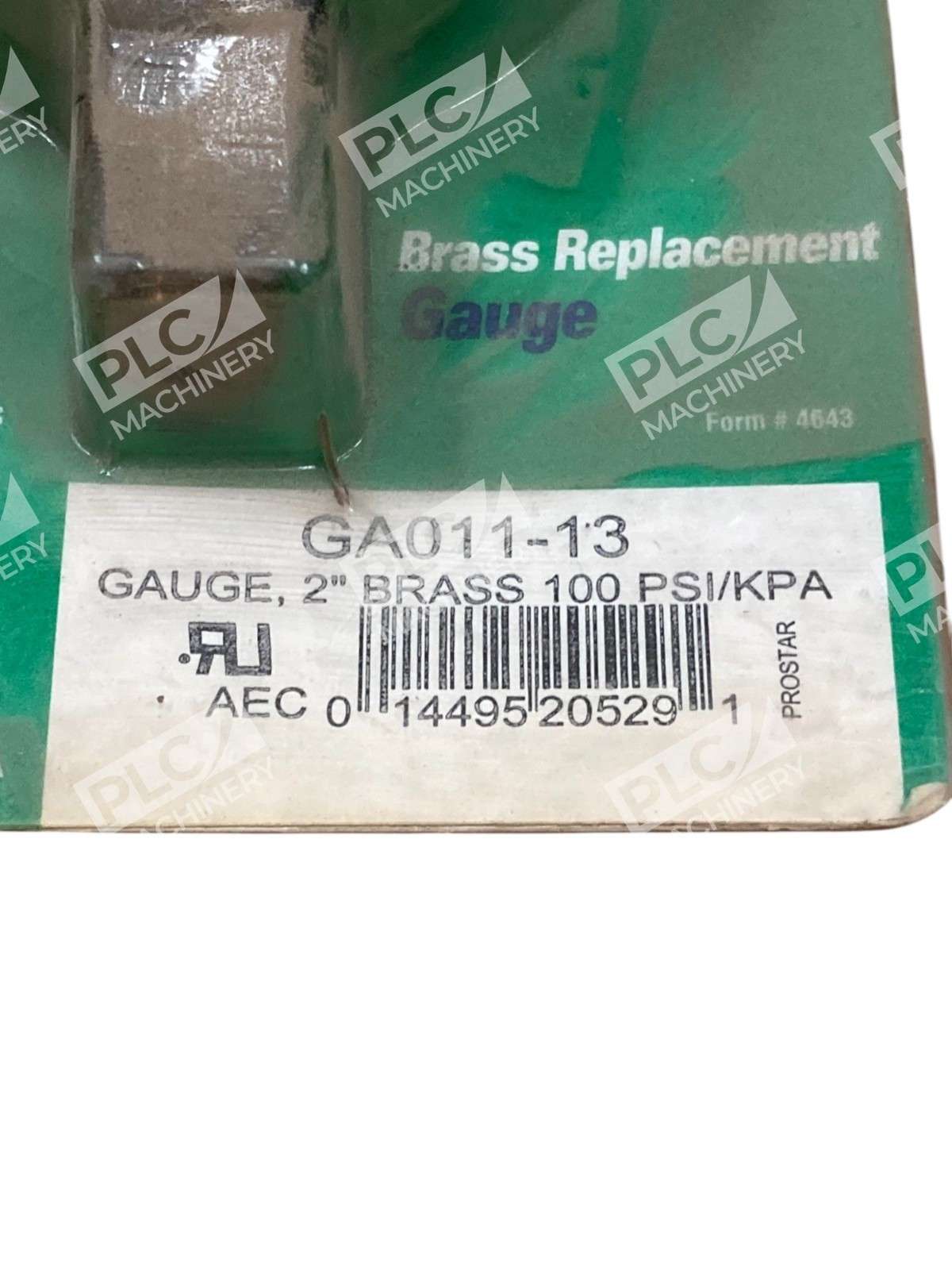 Praxair 4643 2" 100PSI/KPA Brass Replacement Gauge GA011-13