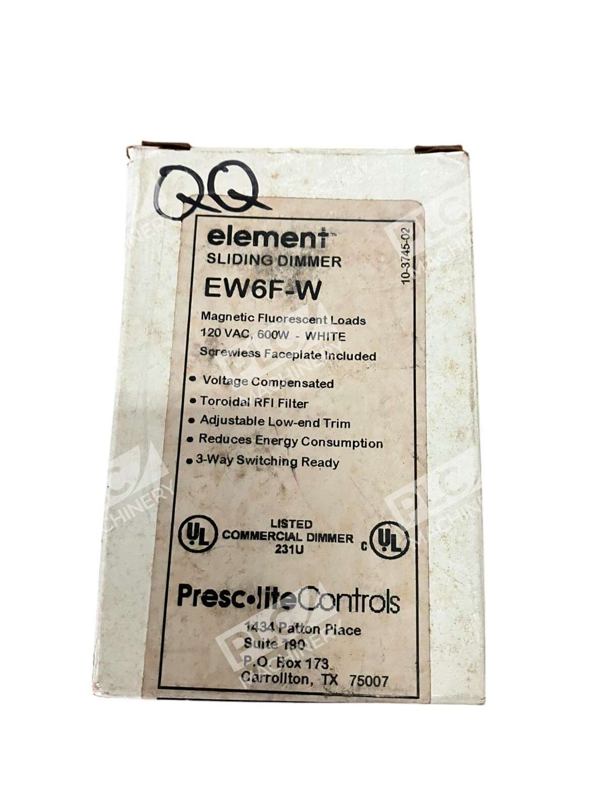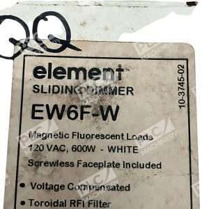 The Prescolite Controls EW6F-W is a white sliding dimmer switch designed for controlling lighting fixtures. It operates on 120VAC and can handle a maximum load of 600W. The switch style is a slide, allowing for easy adjustment of lighting intensity. The model EW6-I is specifically designed for use with Element fixtures. This dimmer switch is a versatile and functional addition to any home or commercial space, providing convenient control over lighting levels with a sleek and modern design.