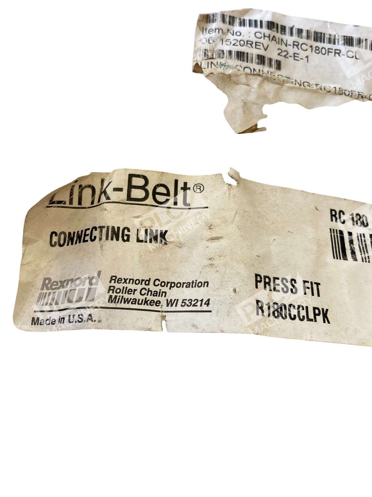 The Rexnord Link-Belt R180CCLPK RC 180 Press Fit Cotter Chain Connecting Link is a high-quality unit designed for industrial automation and motion control systems. This connecting link is specifically designed for use with Rexnord roller chains, ensuring smooth and efficient power transmission. With a durable construction and precise engineering, this connecting link is a reliable component for ensuring the proper functioning of machinery and equipment in various industrial settings.