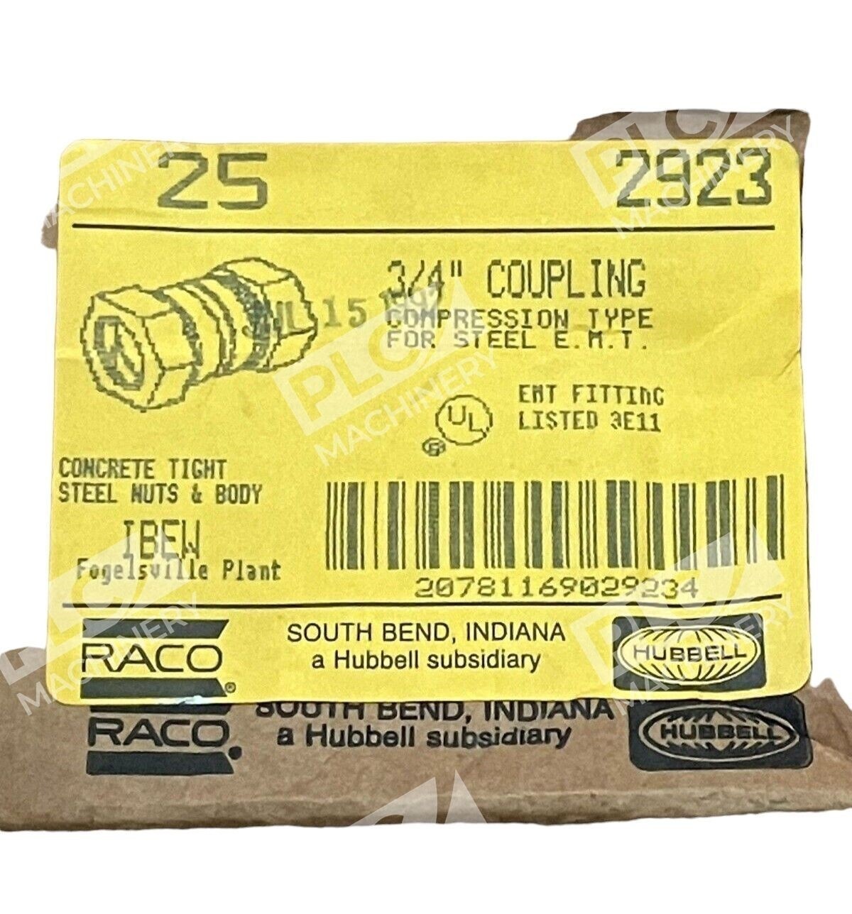 This Raco Hubbell 2923 3/4″ coupling is made of high-quality steel and is ideal for use with Electrical Metallic Tubing (EMT). It features a compression type fitting for a secure connection and comes in a box of 25. The silver color adds a sleek touch to your electrical installation project.