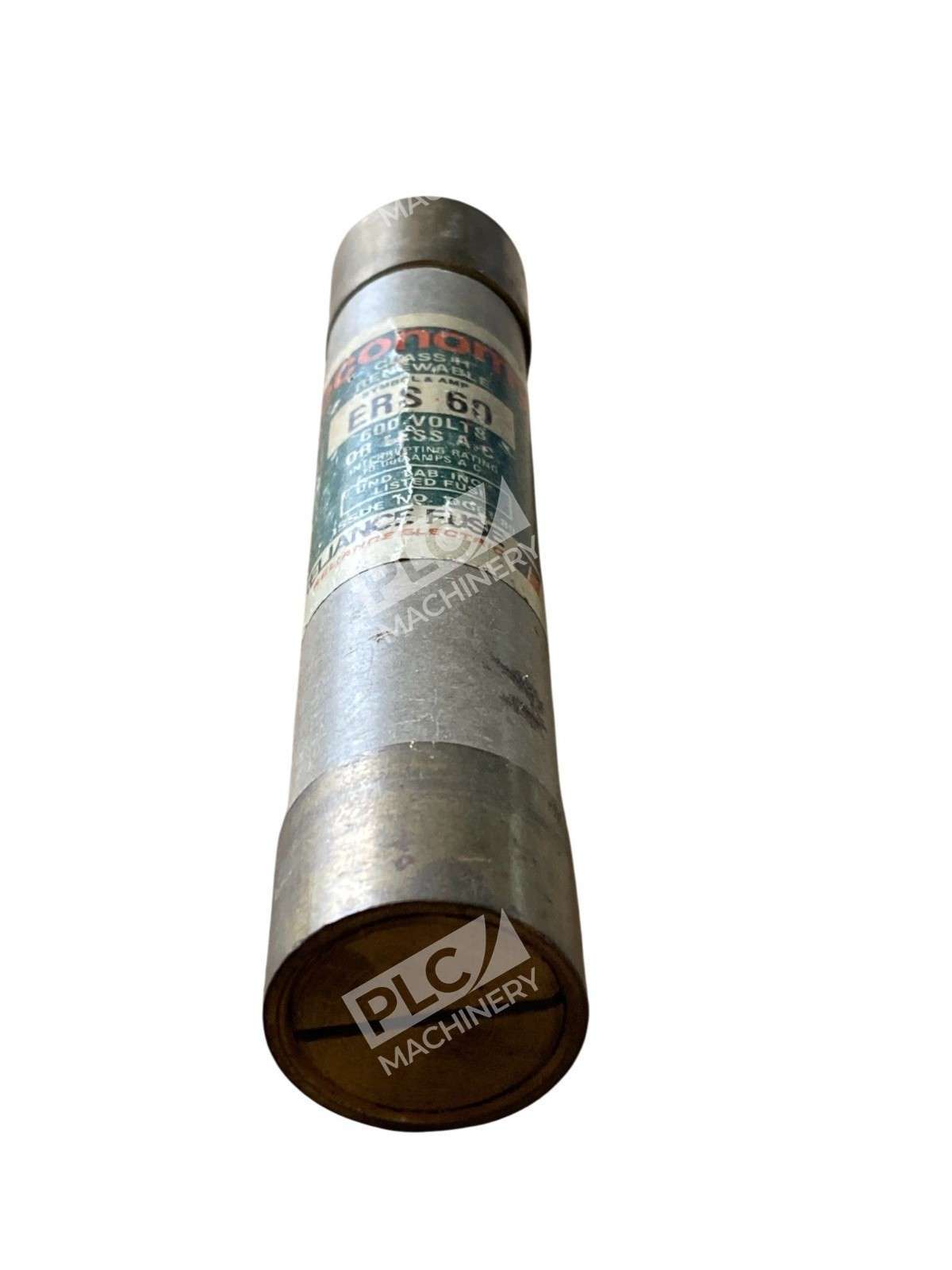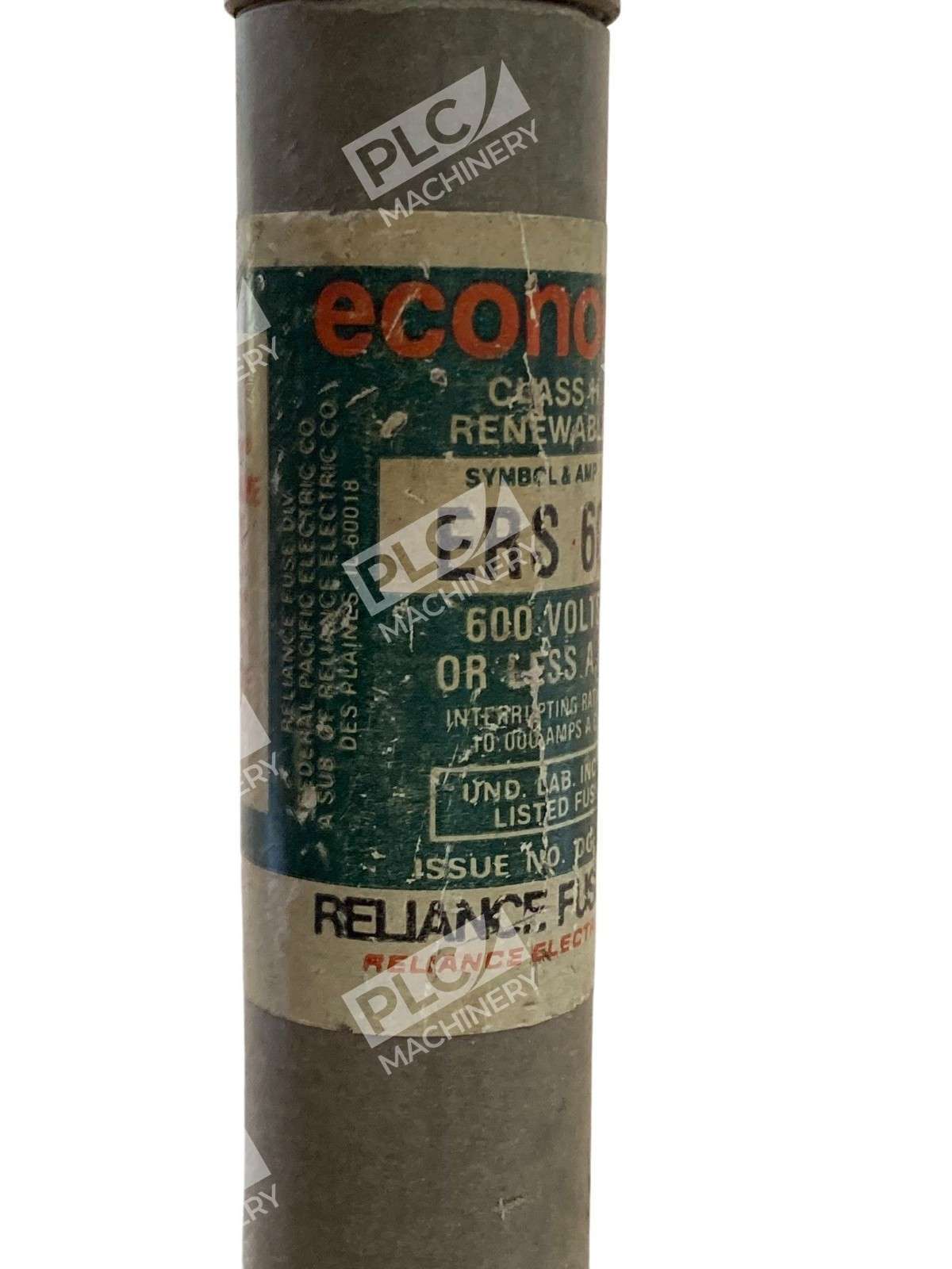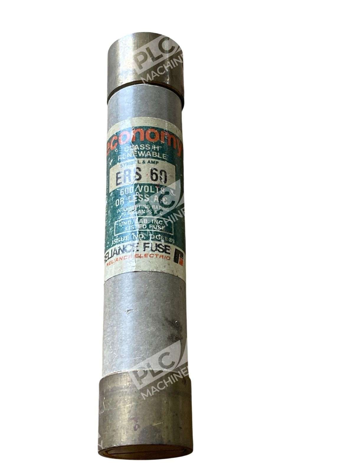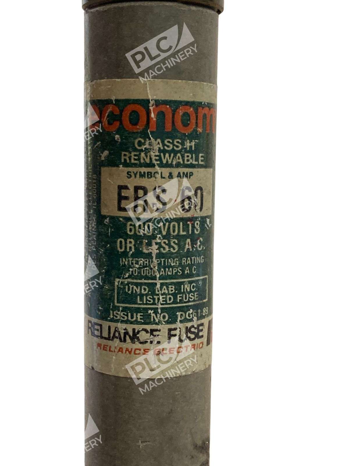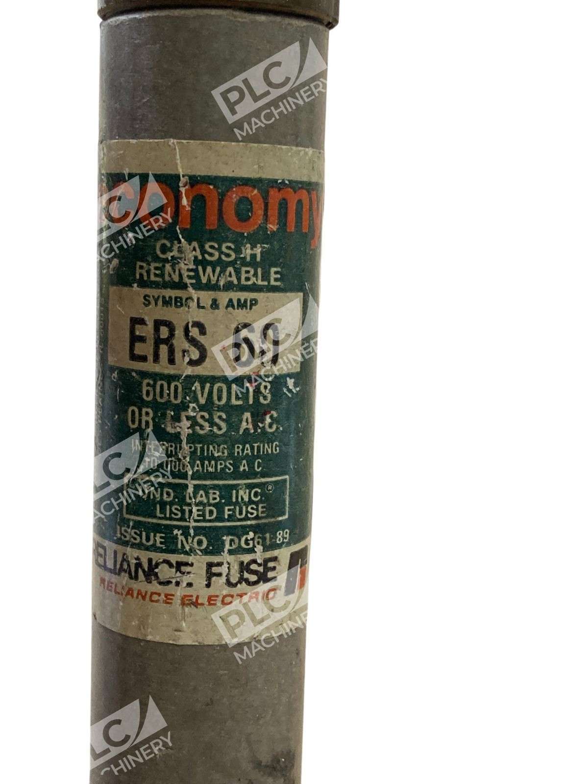 The Reliance Electric Economy ERS 60 is a Class H renewable fuse designed to provide reliable overcurrent protection in industrial and commercial electrical systems. With a 60-ampere rating and a voltage capacity of 600 volts AC, this fuse is suitable for applications where available short-circuit currents do not exceed 10,000 amperes.