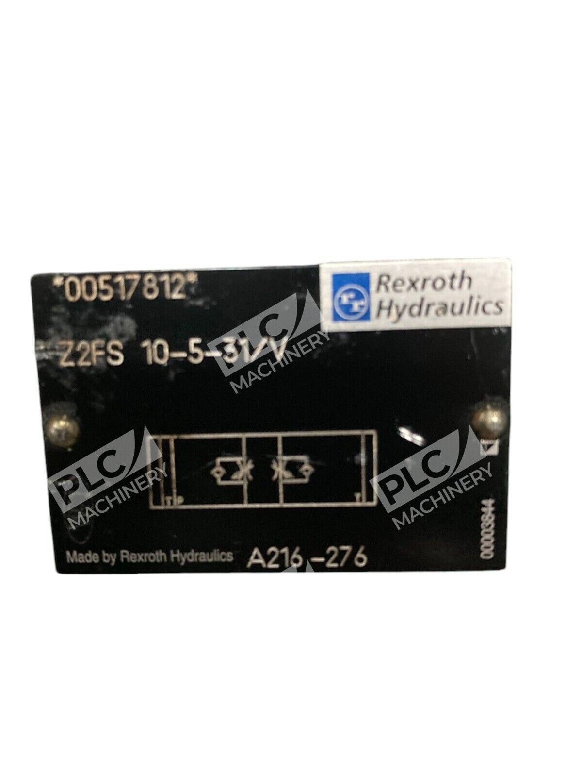 This is a Rexroth Hydraulics throttle check valve with solenoid valve operation. The model number is 600 808 A216-276 00517812 Z2FS 10-5-31/V.