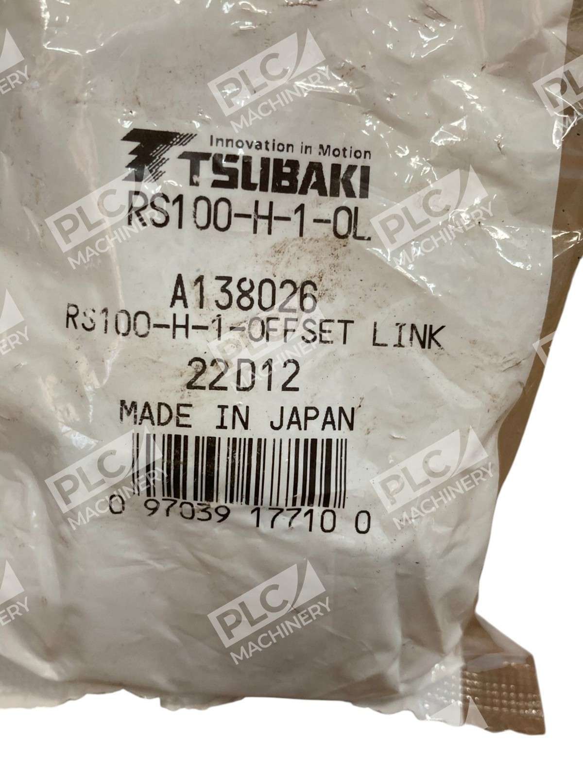 Tsubaki RS100-H-1-OL Offset Link The Tsubaki RS100-H-1-OL Offset Link is a precision-engineered component designed to seamlessly integrate into #100 roller chains, facilitating adjustments in chain length when an odd number of links is required. This
