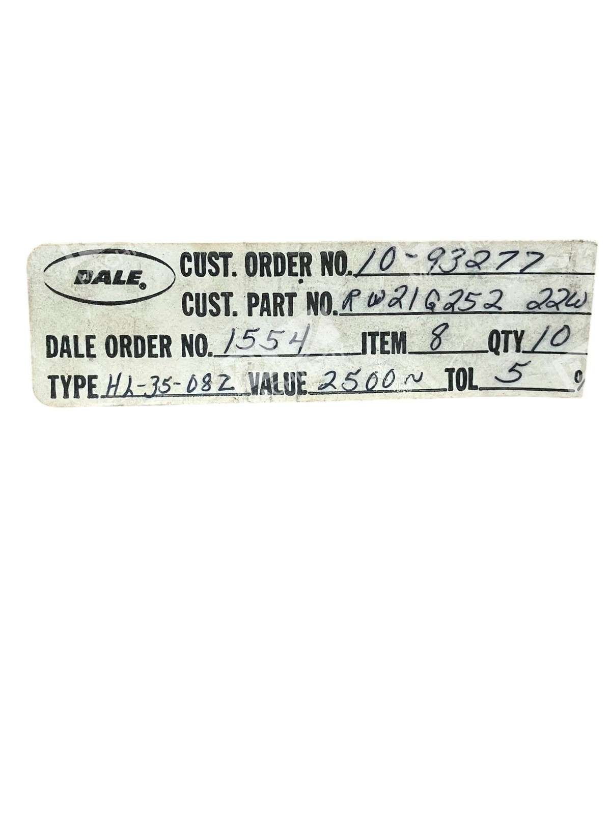 Dale HL-35-08Z Wirewound Power Resistor 2.5k? 22W RW21G252 Pack of 5 The Dale HL-35-08Z Wirewound Power Resistor is a high-quality component designed for applications requiring precise resistance and reliable performance. This resistor offers a res