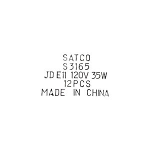 The Satco JD E11 120V 35W Light Bulb S3165 is a box of 12 bulbs manufactured in China. These bulbs are designed for use in other lights & lighting applications, such as facility lighting and maintenance. They are branded by Satco and are ideal for business & industrial settings.