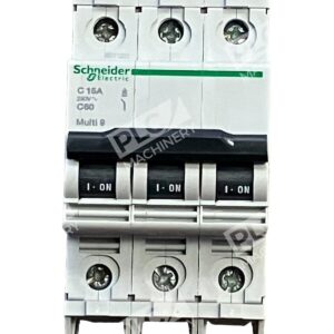 The Schneider Electric 60179 Multi 9 C60 is a three-pole miniature circuit breaker (MCB) designed to provide reliable protection for electrical circuits. With a 15-ampere current rating and a C curve tripping characteristic, it effectively safeguards against overloads and short circuits in various applications.