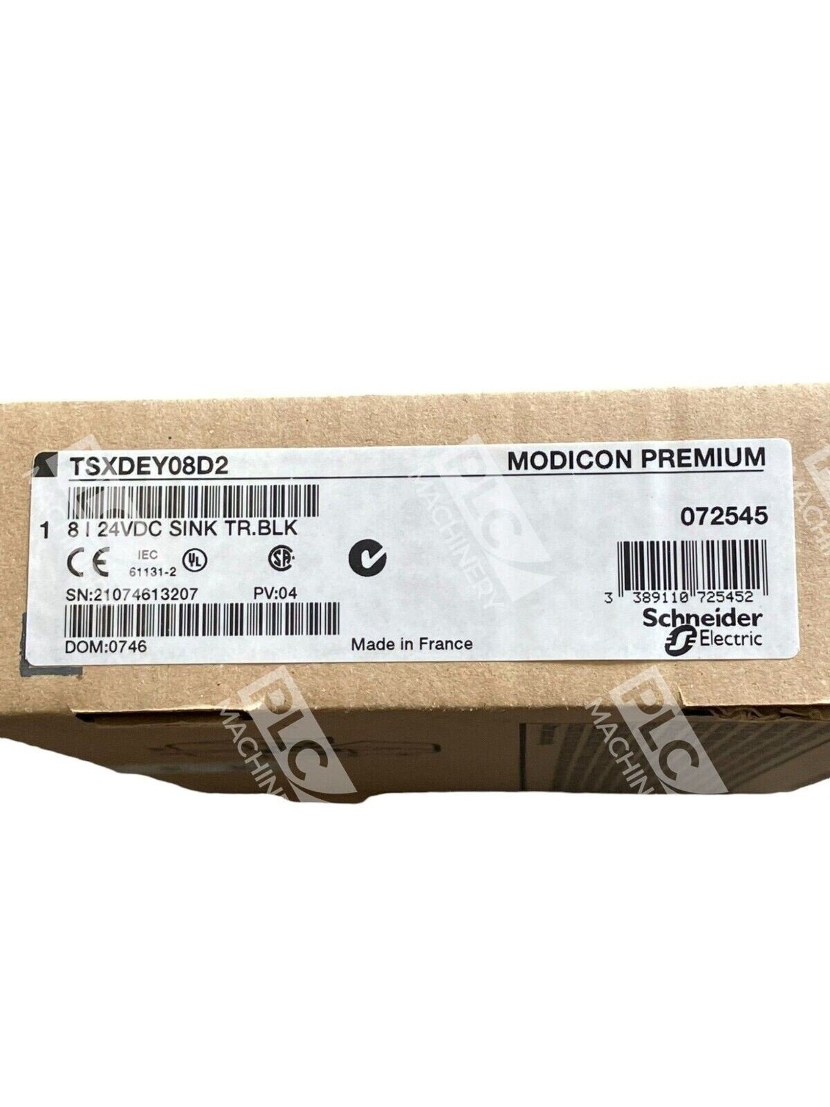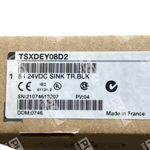 The Schneider Electric Modicon Premium TSXDEY08D2 is an 8-channel discrete input module designed for the Modicon Premium automation platform. It operates at 24V DC positive logic and is compatible with both 2-wire and 3-wire proximity sensors conforming to EN/IEC 60947-5-2 standards.