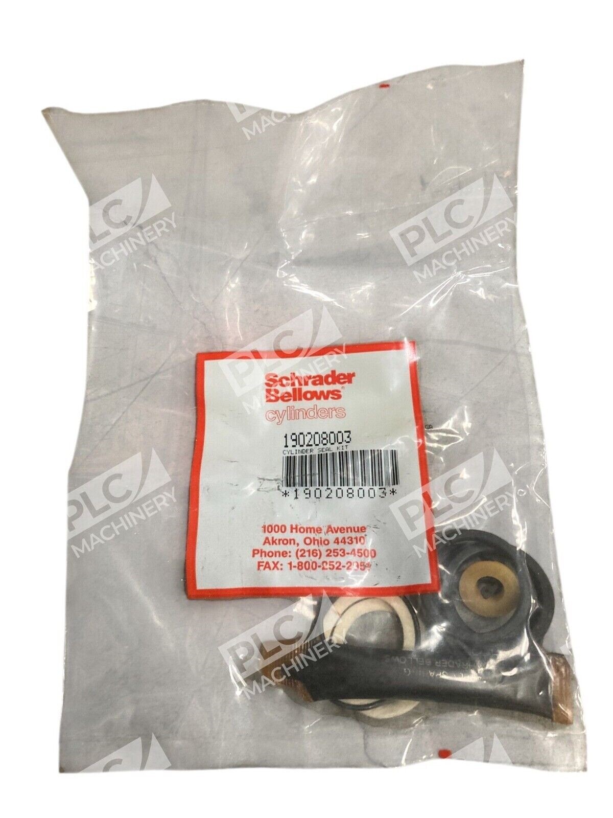 This product is a Schrader Bellows cylinder seal kit with part number 190208003. It is designed for use in mechanical power transmission and industrial automation applications. The brand associated with this product is Schrader Bellows.