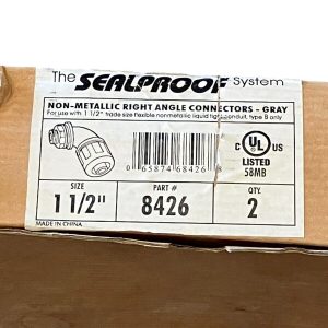 The Sealproof System 1-1/2″ Non-Metallic Right Angle Connectors in Gray by Superflex Ltd. are made of PVC/Plastic. This box includes 2 conduit connectors designed for use in electrical applications.