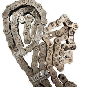 - Solid Bushing and Roller Construction: Enhances wear resistance and extends the chain’s operational life.