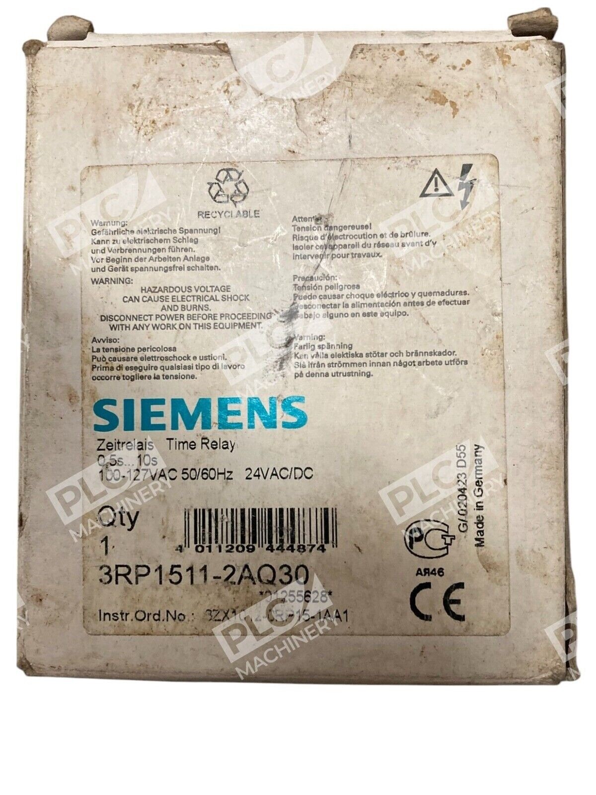 Siemens 100-127VAC 50/60Hz 24VAC/DC 0.5-10s Time Relay 3RP1511-2AQ30 is a DC current type relay manufactured in Germany. It is suitable for time relay applications.