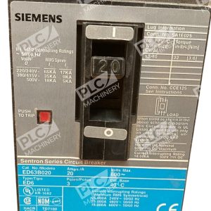 The Siemens 20A 3 Pole 600V Sentron Series Circuit Breaker ED63B020 is a reliable and high-quality electrical device designed for industrial and commercial applications. With a maximum amperage of 20A and three poles, this circuit breaker from Siemens offers safe and efficient protection for electrical circuits up to 600V. The Sentron Series is known for its durability and reputation as a trusted brand in the electrical equipment and supplies industry, making it a valuable component for any circuit breaker and disconnectors setup.