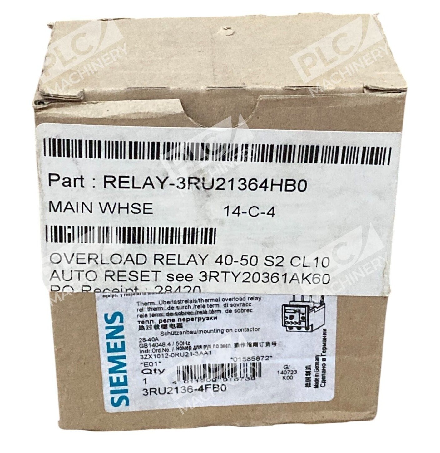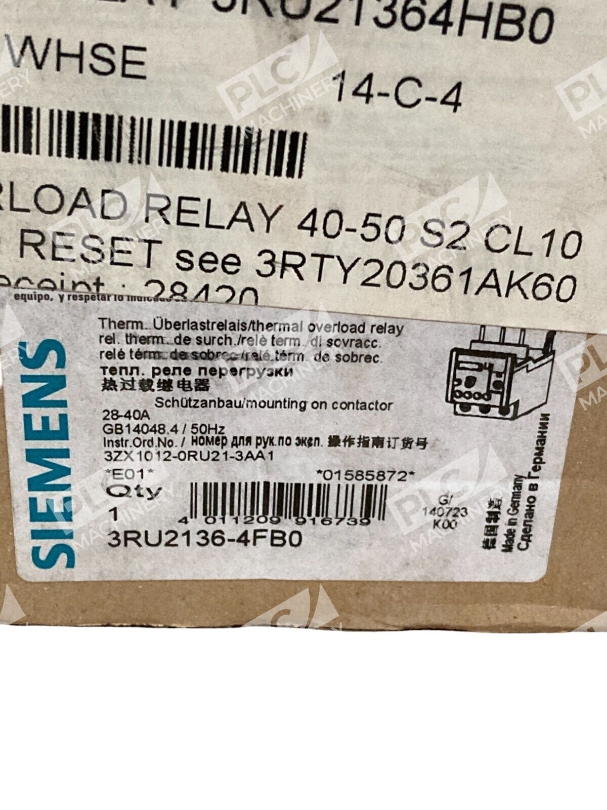 The Siemens 28-40A GB14048 4/50Hz Thermal Overload Relay 3RU2136-4FB0 is a high-quality electrical equipment designed for industrial applications. This relay, manufactured by Siemens, is specifically rated for a nominal current of 28 to 40 amps and operates at a frequency of 4/50Hz. It serves as a protective device to prevent overloading and ensures reliable performance of electrical circuits in a variety of industrial settings. With its trusted brand and specific design features, this thermal overload relay is a valuable component for maintaining electrical system integrity.
