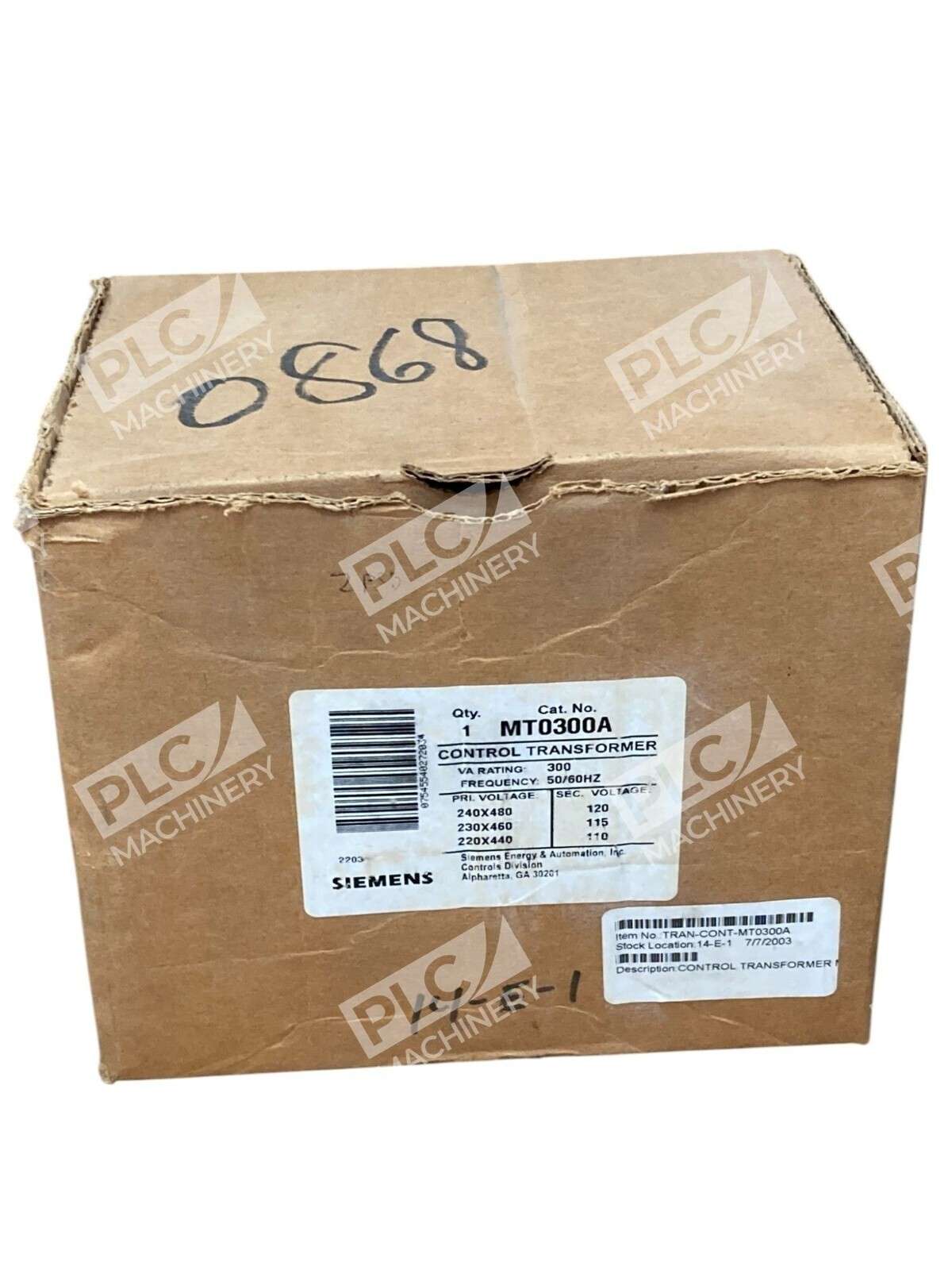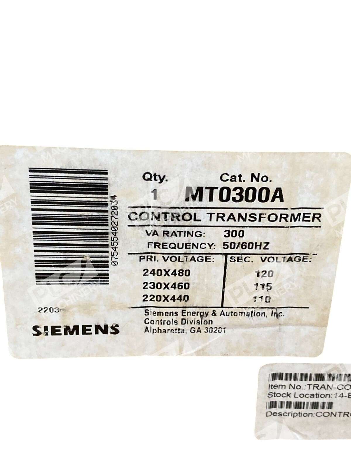 The Siemens 300VA 50/60Hz Industrial Control Transformer MT0300A is a reliable and high-quality electrical component designed for industrial control systems. With a primary voltage rating of 240/480V, this transformer is capable of efficiently stepping down or stepping up voltage levels to meet the specific requirements of various industrial applications. The Siemens brand is known for its durability and performance in the industry, making this transformer a trusted choice for businesses and industrial settings.