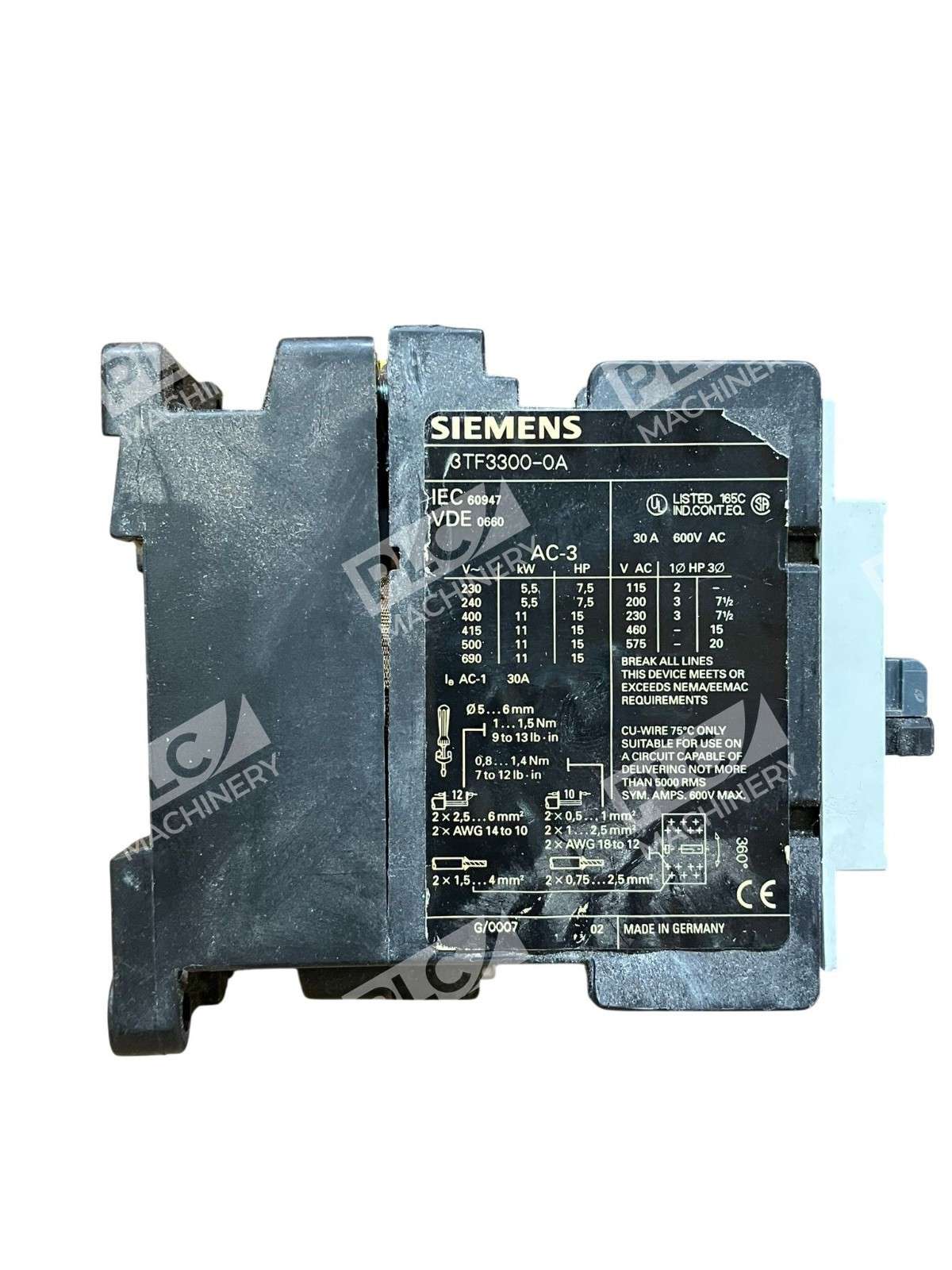 Siemens 3TF3300-0A AC Power Contactor 30A 600V