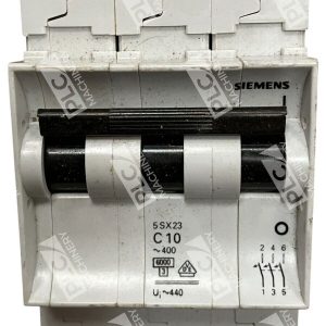 The Siemens 5SX2-310-8 is a 3 Pole 10A Circuit Breaker from the 5SX23 series. It is designed for DIN Rail mounting and is classified as a unit type. This circuit breaker is manufactured by Siemens and is part of their electrical equipment and supplies line for business and industrial applications.