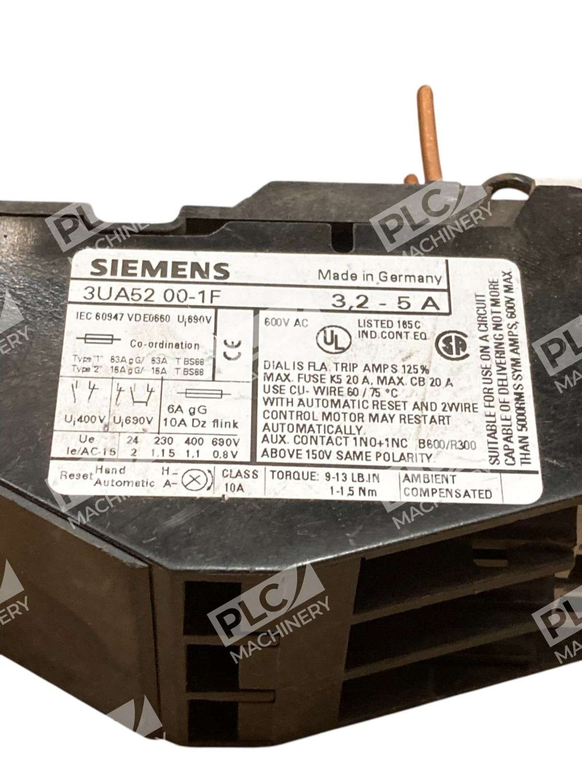 Siemens 600VAC 3.2-5A Overload Relay 3UA50 00-1F