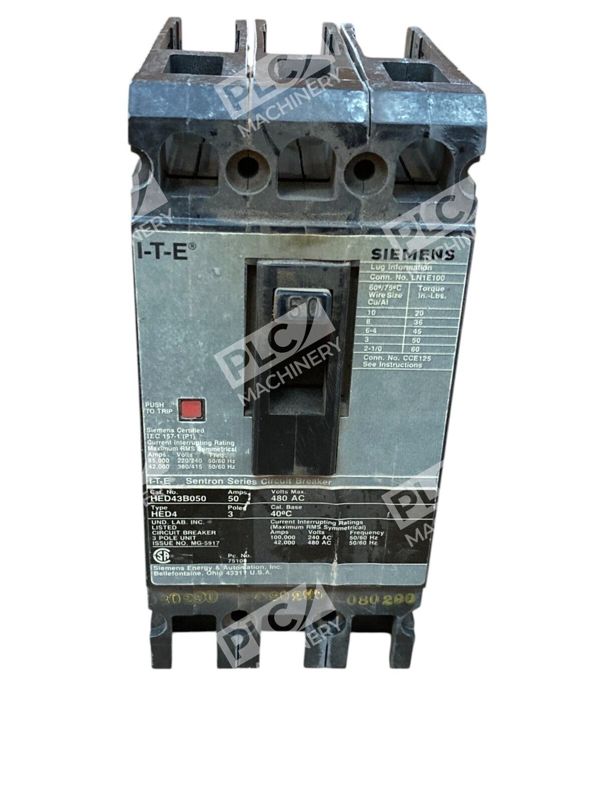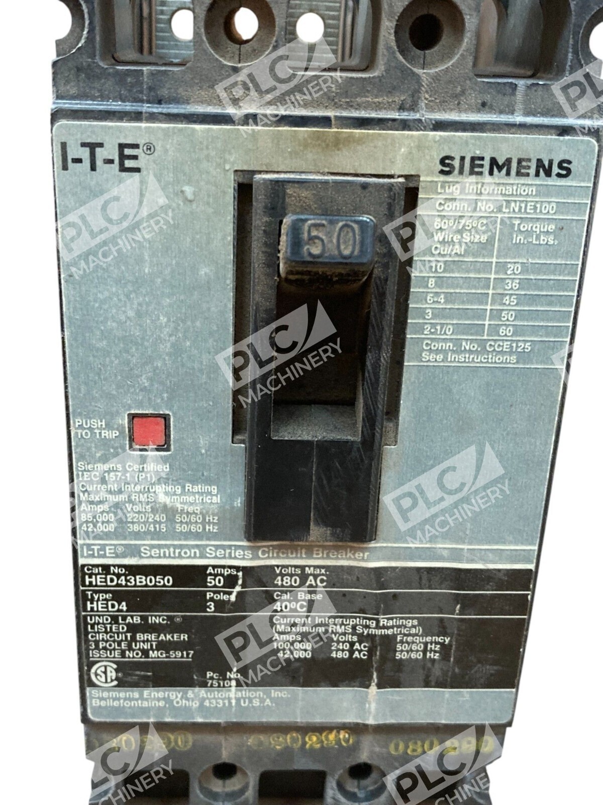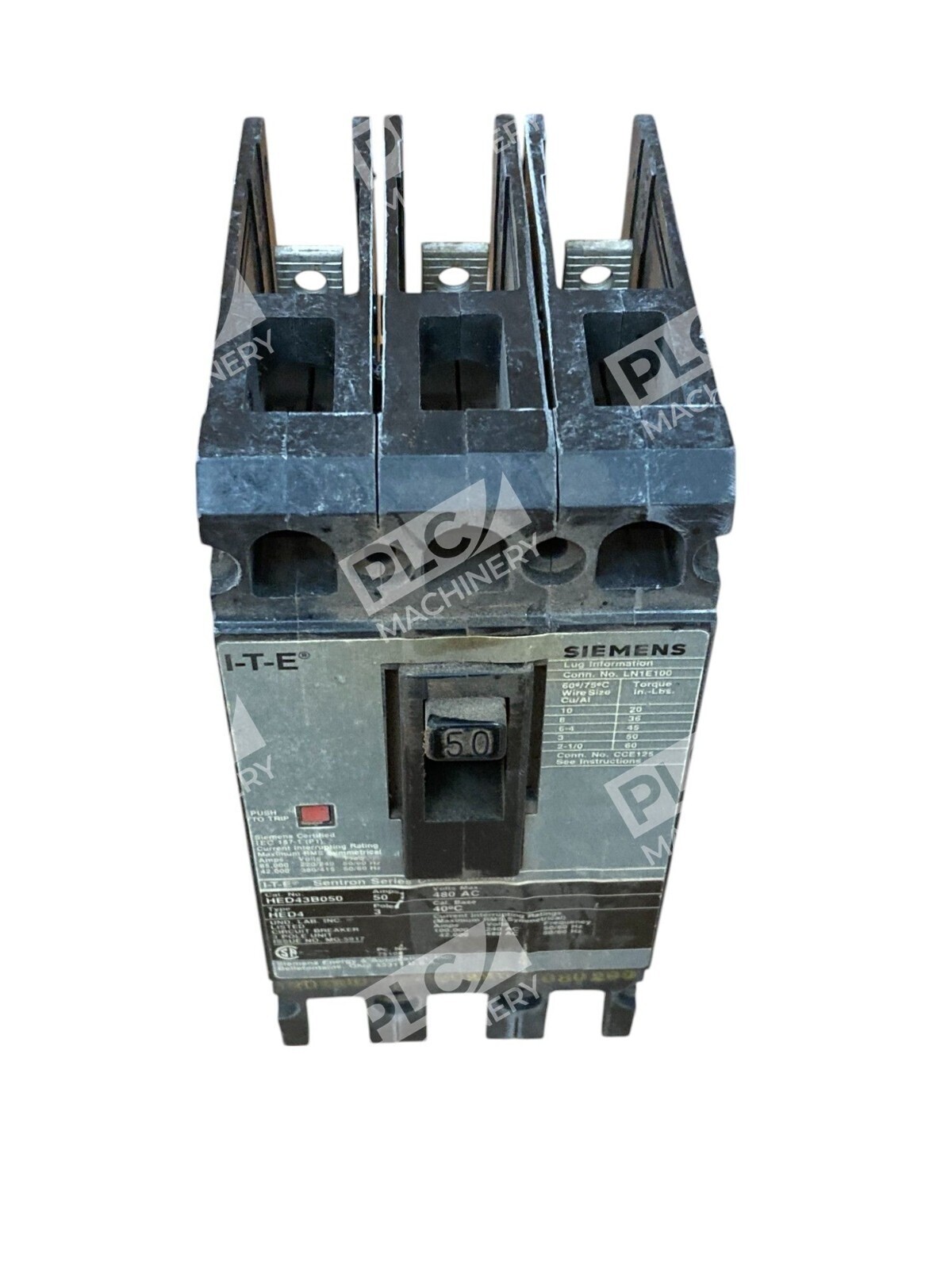 The Siemens I-T-E 50A 3 Pole 480VAC Sentron Series Circuit Breaker HED43B050 is a high-quality electrical component designed for industrial and commercial applications. With a maximum amperage of 50A and compatibility with 3 pole, 480VAC systems, this circuit breaker provides reliable protection and control for electrical circuits. The unbranded/generic nature of the product indicates that it is a versatile and widely used solution in the electrical equipment and supplies industry, making it a valuable addition to any business or industrial setting.