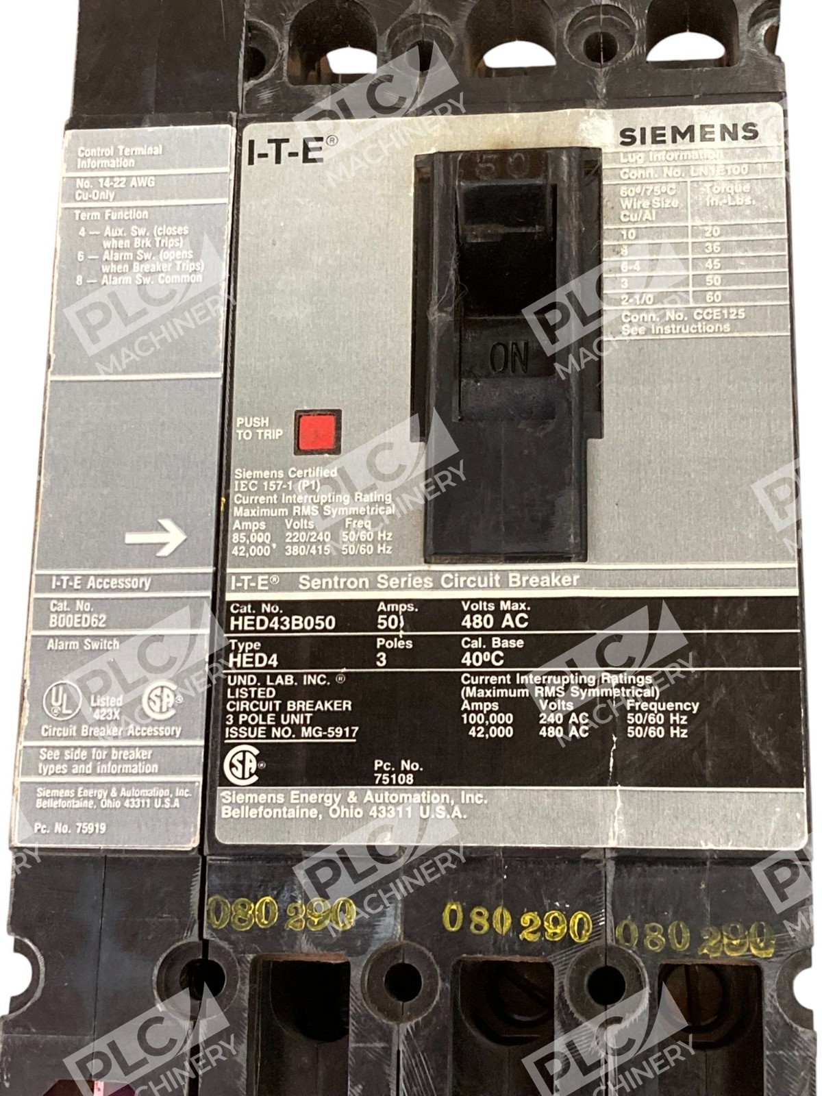 Siemens I-T-E Accessory B00ED62 W/ Sentron 50A Circuit Breaker HED43B050
