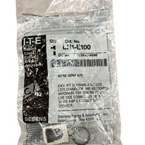 The Siemens I-T-E Wire Grip Kit is a molded case circuit breaker accessory designed specifically for use with Siemens circuit breakers. This kit includes specialized wire grips that provide a secure and reliable connection for wiring. The LN1-E100 model is designed to be compatible with Siemens circuit breakers, offering a convenient solution for ensuring proper wire grip and connection in electrical setups. As a trusted brand in electrical equipment and supplies, Siemens ensures high quality and performance with this accessory kit.