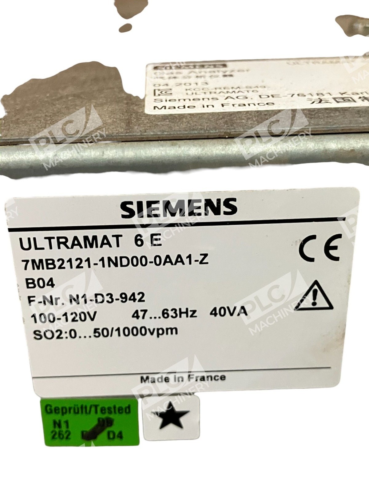 The Siemens Ultramat 6 E gas analyzer is designed for measuring SO2 levels in various industrial applications. Manufactured in France by Siemens, this unit operates at 48…63Hz with a power consumption of 40VA and a voltage range of 100-120V. The gas analyzer is a reliable and precise tool for monitoring and analyzing gas emissions, ensuring quality control and compliance with environmental regulations. With its brand reputation and high-quality construction, this product is a valuable asset for businesses in the field of gas and combustion analysis.