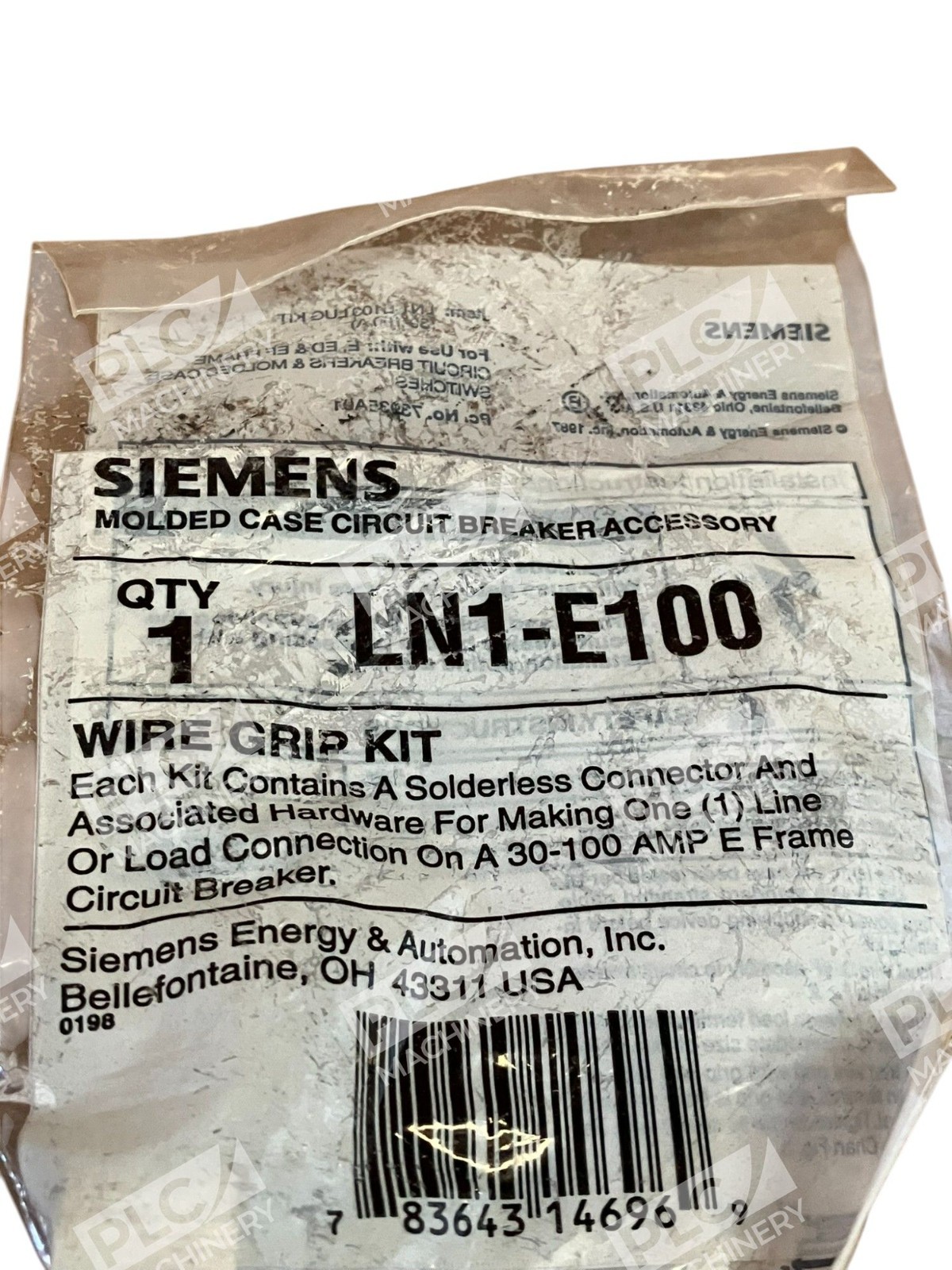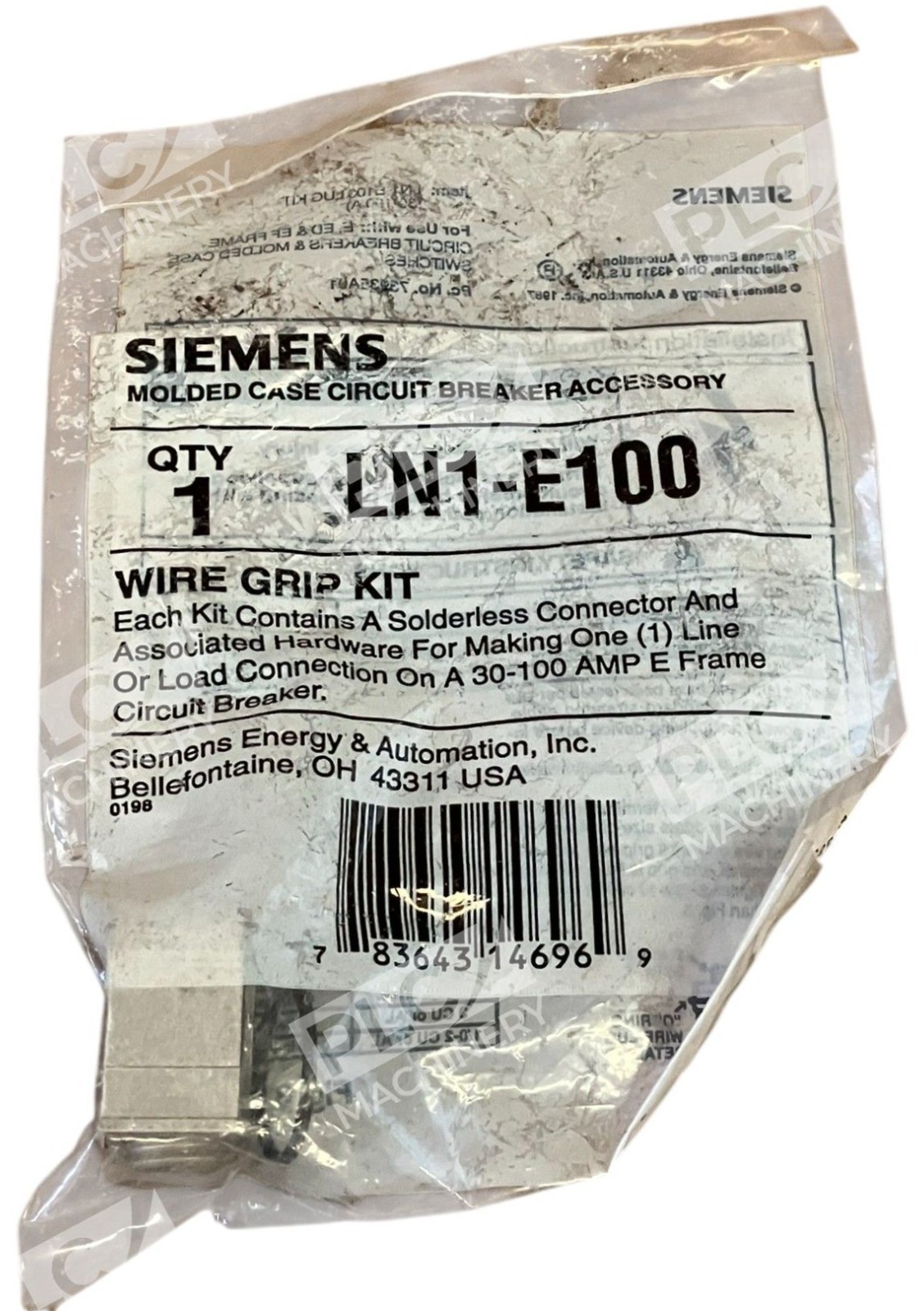 The Siemens Wire Grip Kit LN1-E100 is a set of accessories designed to be used with circuit breakers and disconnectors in electrical systems. Made by the reputable brand Siemens, this kit provides a reliable and high-quality solution for securely holding and connecting wires in industrial and commercial applications. Perfect for businesses and professionals in the electrical equipment and supplies industry, this wire grip kit ensures a safe and efficient installation process.