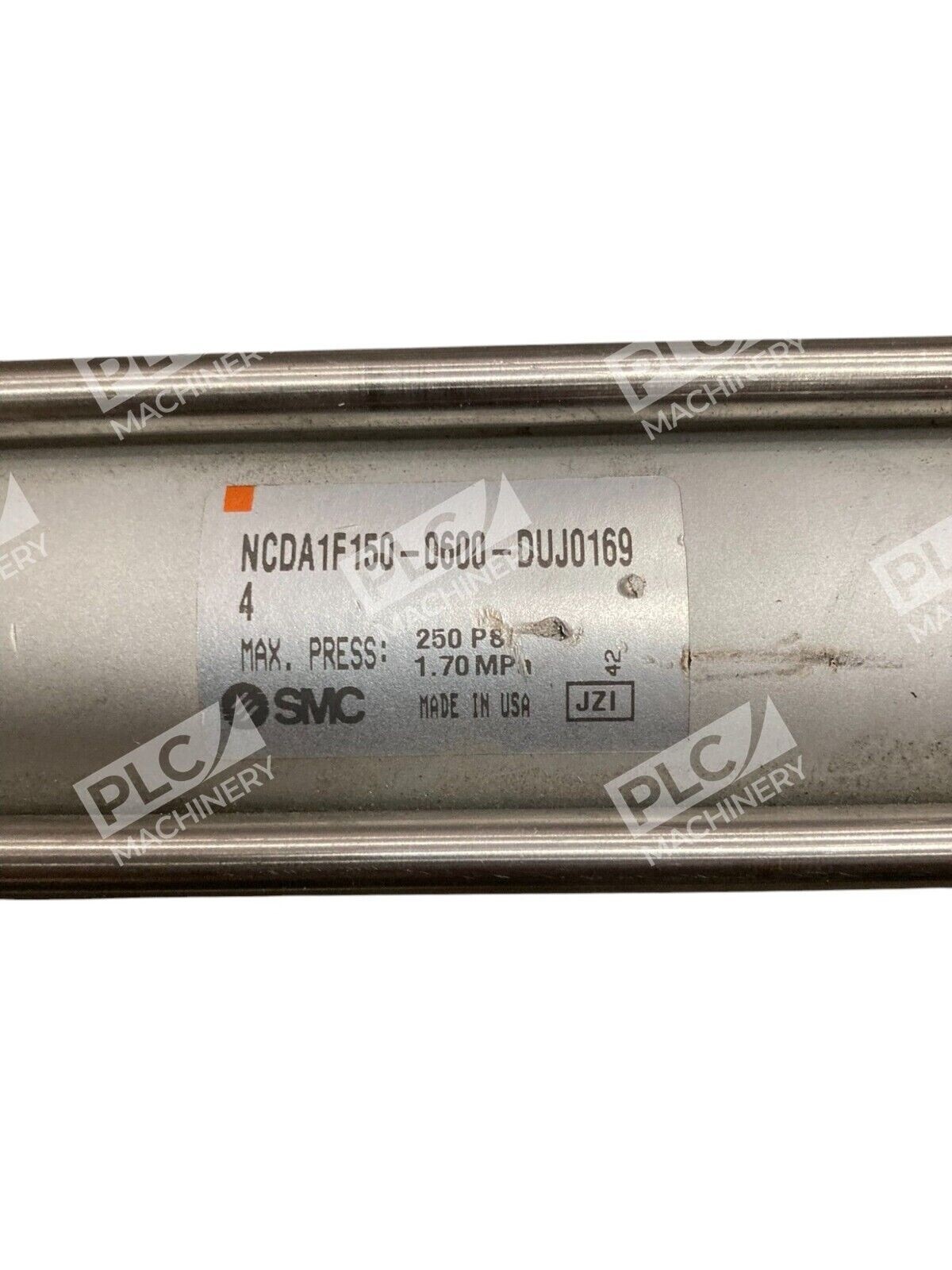 This is an SMC pneumatic cylinder with a maximum pressure of 250psi (1.70MPa). The model number is NCDA1F150-0600-DUJ01694.