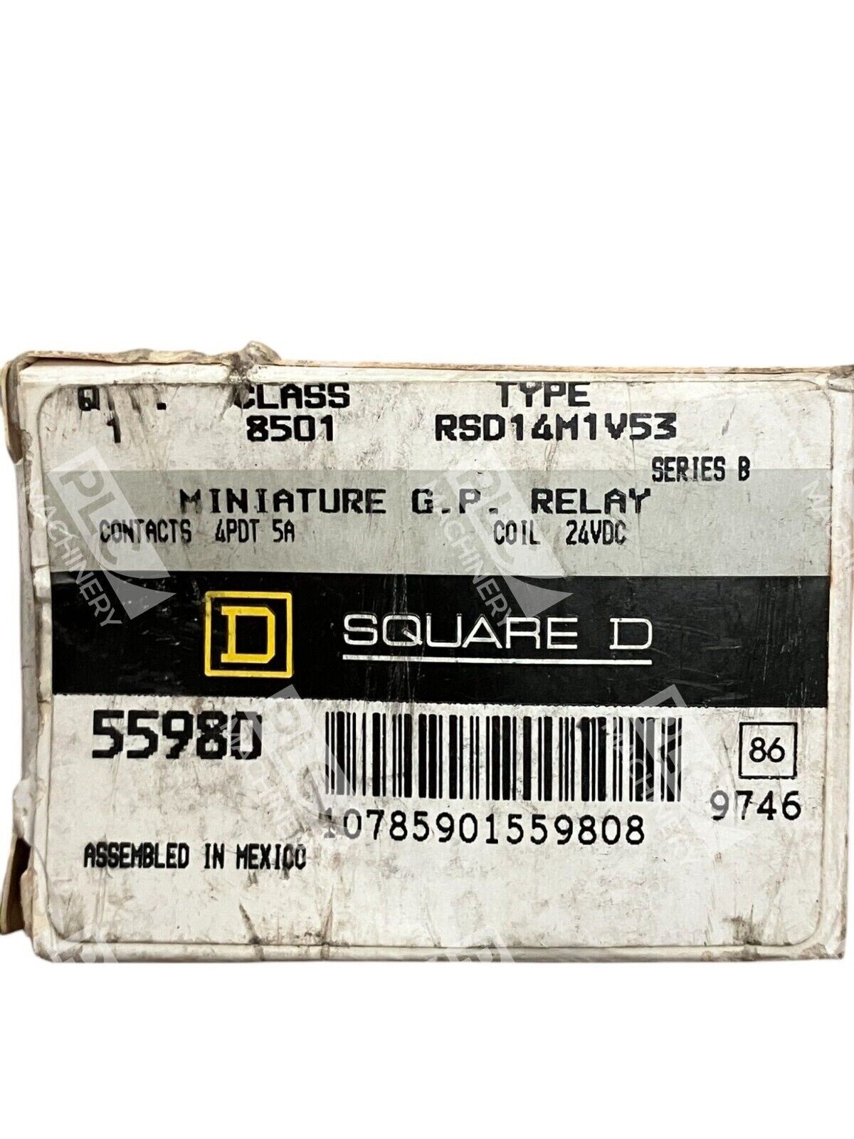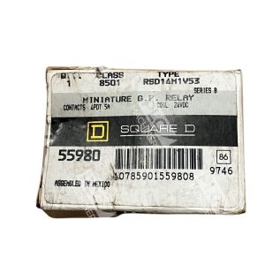 Square D 55980 4PDT 5A Coil 24VDC Miniature GP Relay Contact 8501-RSD14M1V53 is a relay accessory from the brand SQUARE D. It is a 4PDT (four-pole, double-throw) relay with a maximum current rating of 5A and a coil voltage of 24VDC. This miniature general-purpose relay contact is model number 8501-RSD14M1V53.