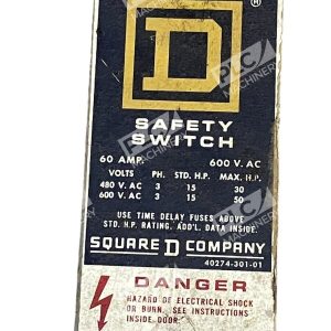 This Square D 60A 600VAC Safety Switch H-362 /D2 is a reliable and durable electrical equipment that is perfect for various business and industrial applications. It is a DC current type switch that is designed to provide maximum safety and protection against short circuits, overloads, and other electrical hazards.