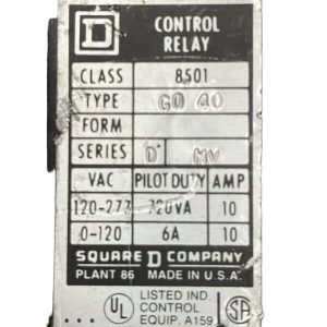 This Square D 8501-G0-40 /D MV Control Relay is a reliable and efficient electrical equipment for industrial purposes. It is manufactured by the renowned brand Square D, known for its high-quality products. This relay is suitable for controlling and switching electrical power circuits with rated voltage up to 690V.