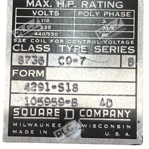 This Square D starter enclosure is a reliable and durable option for industrial automation and motion control applications. The model number 8736 NEMA 00 is a commonly specified choice for those in need of a high-quality starter enclosure. The brand Square D is known for their expertise in the industry and this product is no exception.