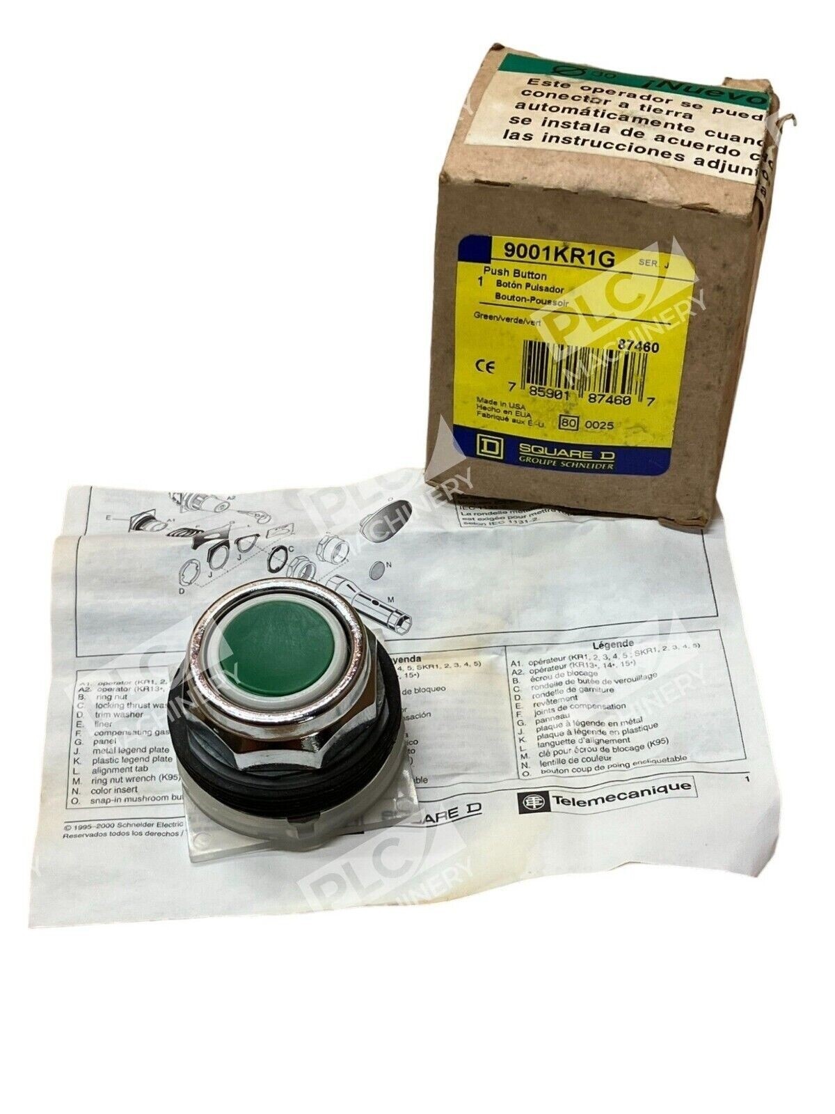 Introducing the Square D 9001KR1G /J Green Push Button, a high-quality push button switch from a trusted brand. This product is brand new and comes in its original factory packaging, ensuring its excellent condition upon delivery.