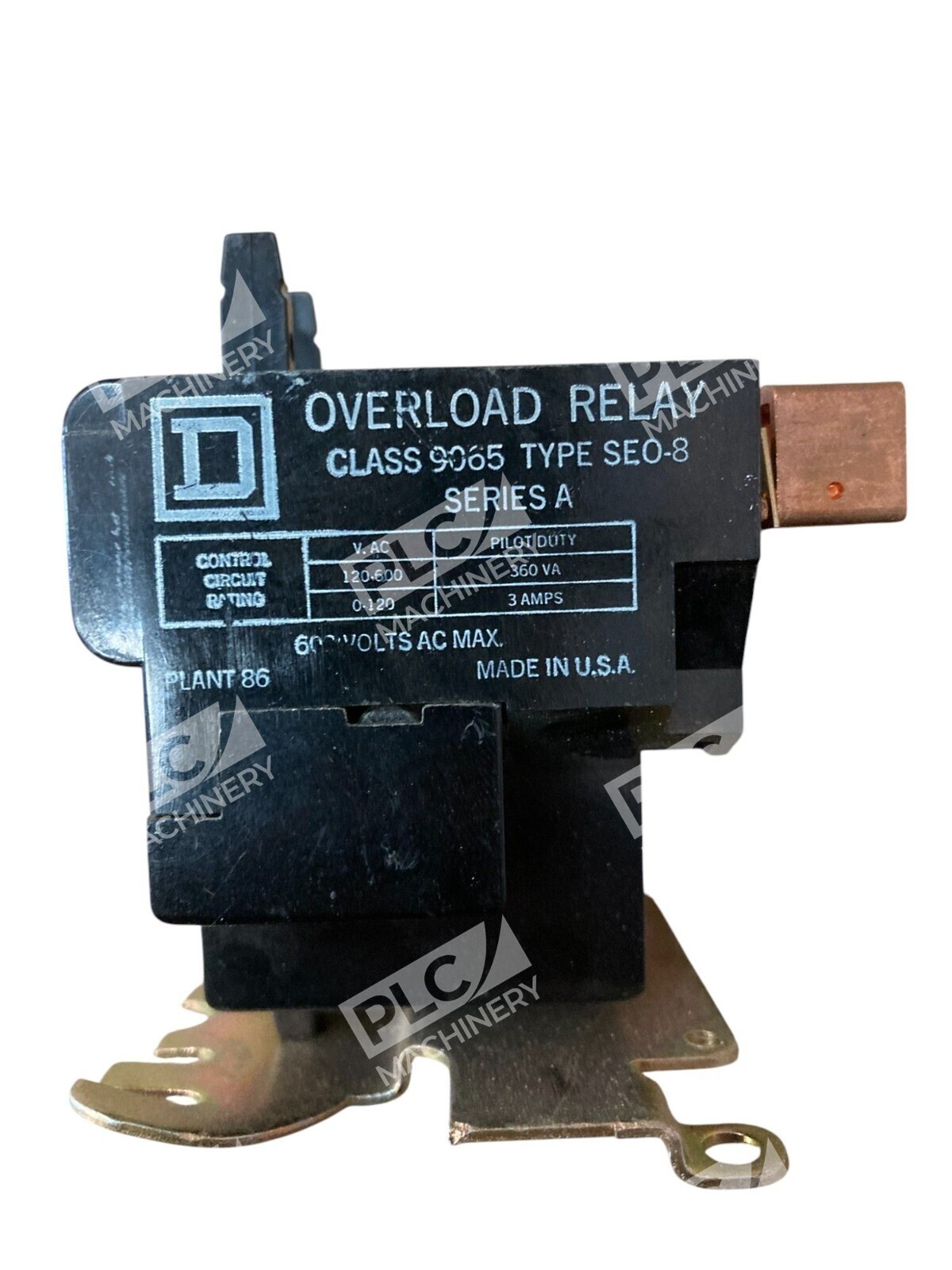 The Square D Plant 86 600VAC 3A Overload Relay 9065-SEO-8 is a type of relay accessory designed for electrical equipment and supplies in industrial settings. Manufactured by the reputable brand Square D, this overload relay functions to protect electrical circuits from overloads by disconnecting the circuit in case of a fault. With a voltage rating of 600VAC and a maximum current of 3A, this relay is suitable for a variety of industrial applications requiring reliable protection and control of electrical systems.
