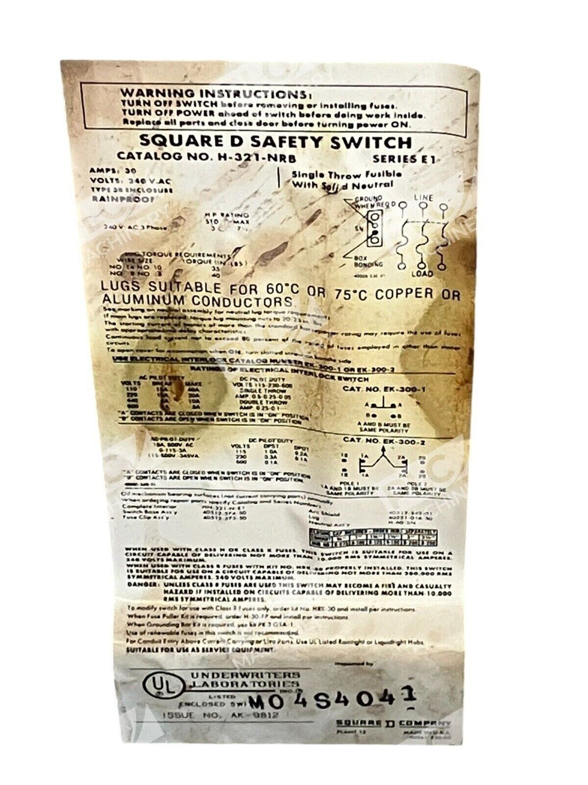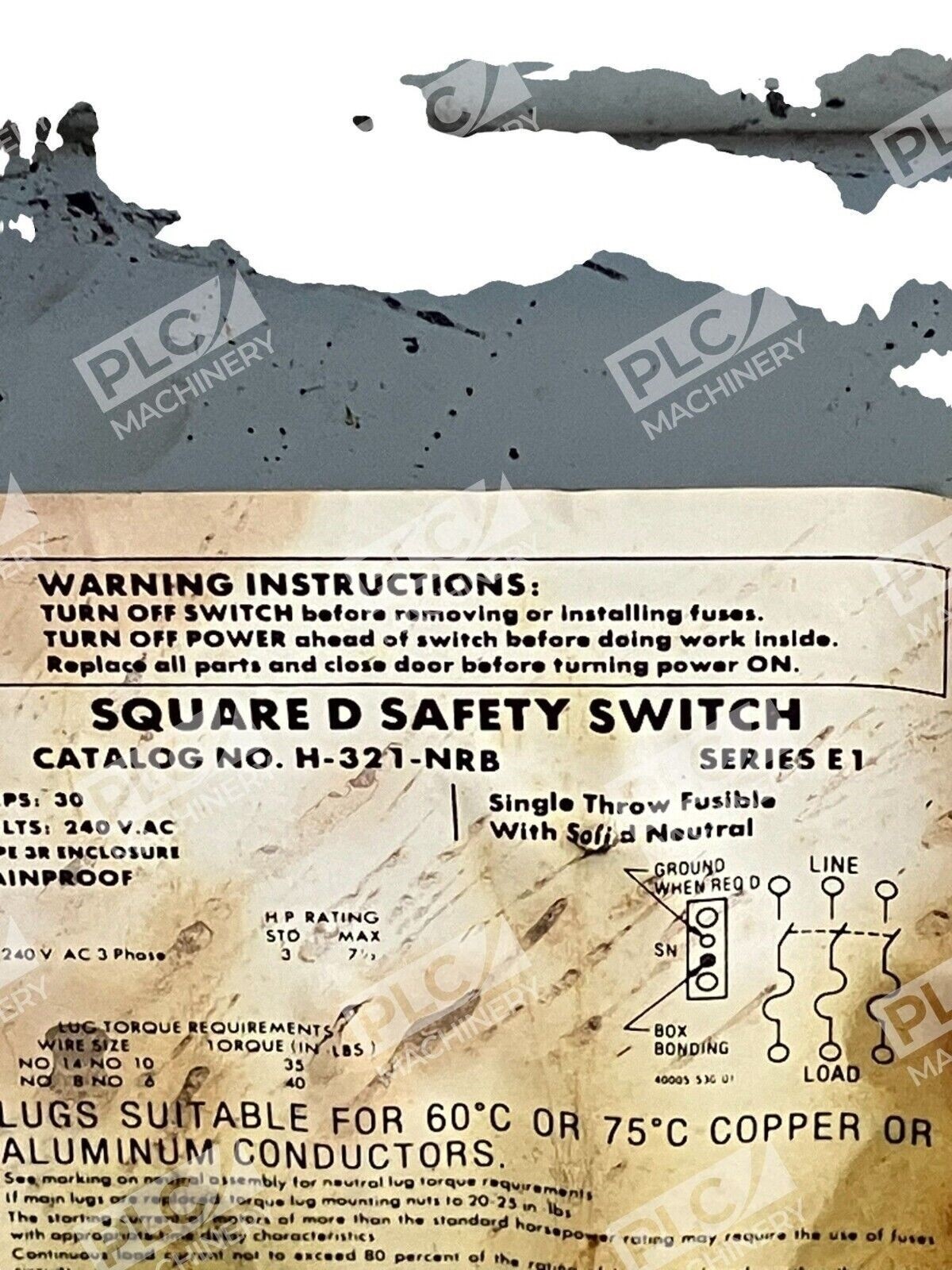 The brand of this switch is Square D, a trusted name in electrical equipment and supplies. It is suitable for use in various industries, including business and industrial settings. The product is in good working order and ready to be installed or utilized.