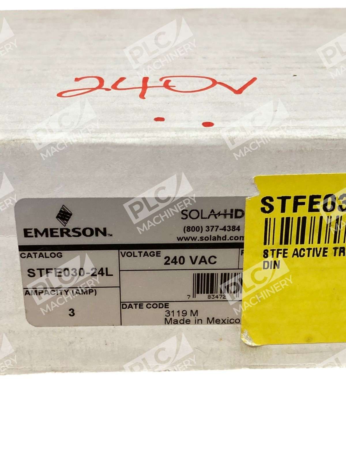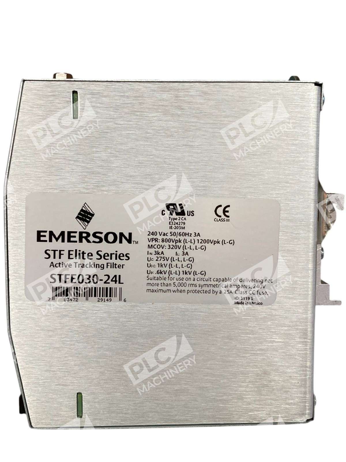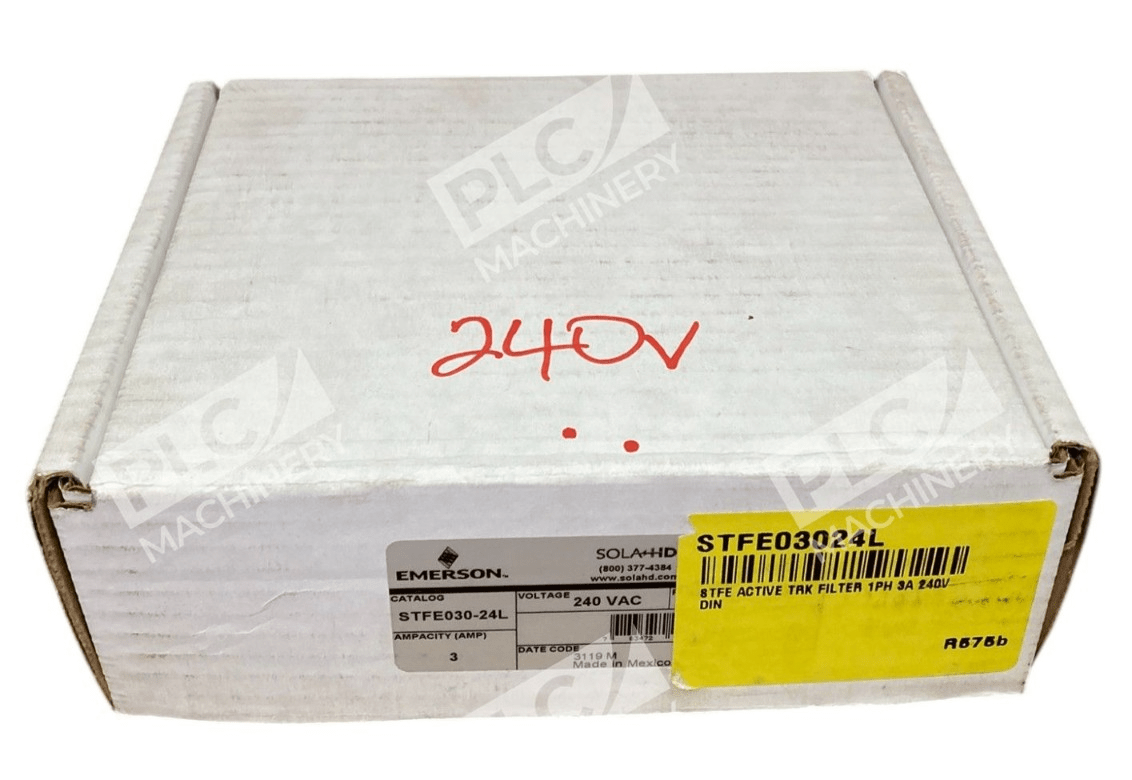 Emerson STFE030-24L STF Elite Series Active Tracking Filter The Emerson STFE030-24L is a premier Active Tracking® Filter from the STF Elite Series, engineered to deliver superior protection against voltage transients and surges in industrial environments. This DIN rail-mounted device is designed to ensure the longevity and reliability of sensitive electronic equipment by continuously monitoring and filtering the AC power line. Key Features Active Tracking® Technology: Continuously monitors the AC power line, instantly responding to high-frequency noise and voltage transients caused by common industrial activities. Comprehensive Surge Protection: Offers transient protection across all modesLine-to-Neutral (L-N), Line-to-Ground (L-G), and Neutral-to-Ground (N-G)with a surge current capacity of up to 45,000 Amps. Durable Construction: Features a patented metal mounting clip for secure DIN rail installation, ensuring stability in demanding industrial settings. LED Status Indicator: Provides clear visual indication of operational status, facilitating easy monitoring and maintenance. Remote Monitoring Capability: Equipped with a Form C contact, allowing integration into remote monitoring systems for enhanced oversight. Wide Operating Range: Functions effectively in temperatures ranging from -40°C to +50°C and humidity levels up to 95% non-condensing, making it suitable for diverse environmental conditions. Reliable Connections: Utilizes screw terminal connections that accept 10-16 AWG wire, meeting IP20 specifications for ingress protection. Technical Specifications Input Voltage: 240 VAC (0-275 Vms) Line Frequency: 47-63 Hz Current Rating: 3.0 Amps Response Time: Less than 0.5 nanoseconds for normal mode; less than 5 nanoseconds for common mode Enclosure Type: IP20 Mounting Type: DIN Rail Dimensions: 4.88 in H x 2.56 in W x 4.56 in D Applications The STFE030-24L is ideal for a variety of industrial applications, including: Control Panels Factory Automation Installations Point-of-Use Industrial Equipment Programmable Logic Controllers (PLCs) Dedicated Industrial and Machine Tools Equipment By integrating the Emerson STFE030-24L into your electrical system, you can significantly enhance the protection and performance of your critical industrial equipment, ensuring operational continuity and reducing the risk of downtime due to power disturbances.