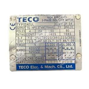 This Teco AEUL IC 411 IP 54 1/2HP 4 Pole High efficiency 3-Phase Induction Motor is a reliable and efficient choice for your industrial automation and motion control needs. The motor is designed to handle AC current type and three-phase AC phase, making it a versatile option for various applications.
