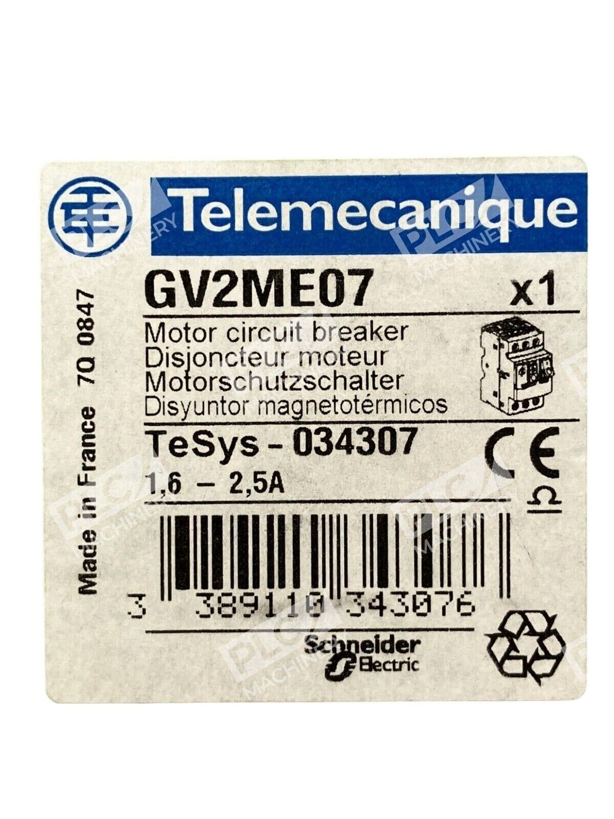 This Telemecanique GV2ME07 Motor Circuit Breaker is a top-of-the-line product that guarantees reliability and efficiency. It is designed to provide optimal control and protection for your motor circuits, ensuring that they function smoothly and without interruptions. With a current range of 1.6-2.5 AMP and a power of 1-1/2 HP, this circuit breaker is suitable for a wide range of industrial automation and motion control applications. It is manufactured by TELEMECANIQUE, a trusted brand known for producing high-quality products.